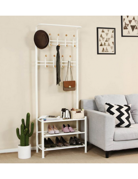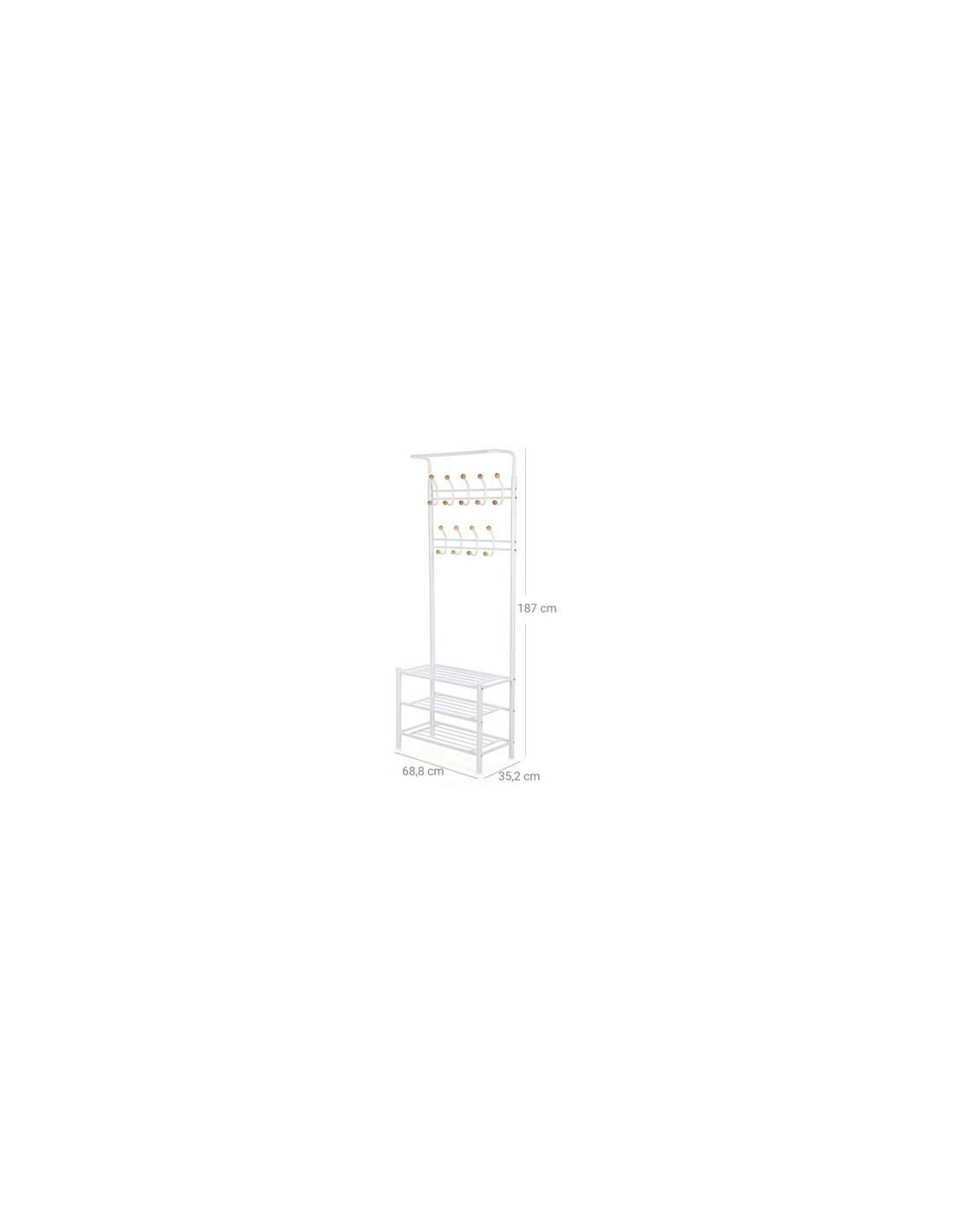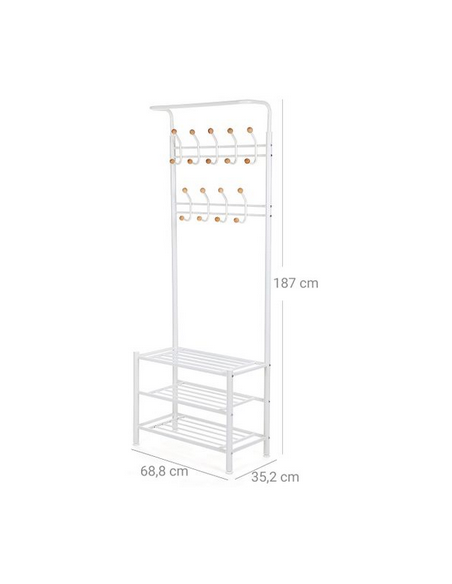 Garderobe stativ udført i et design af hvidlakeret metal. Stativet måler 187 cm i højden og 68,8 x 35,2 cm i bredde og dybde og tåler max. belastning på 40 kg.