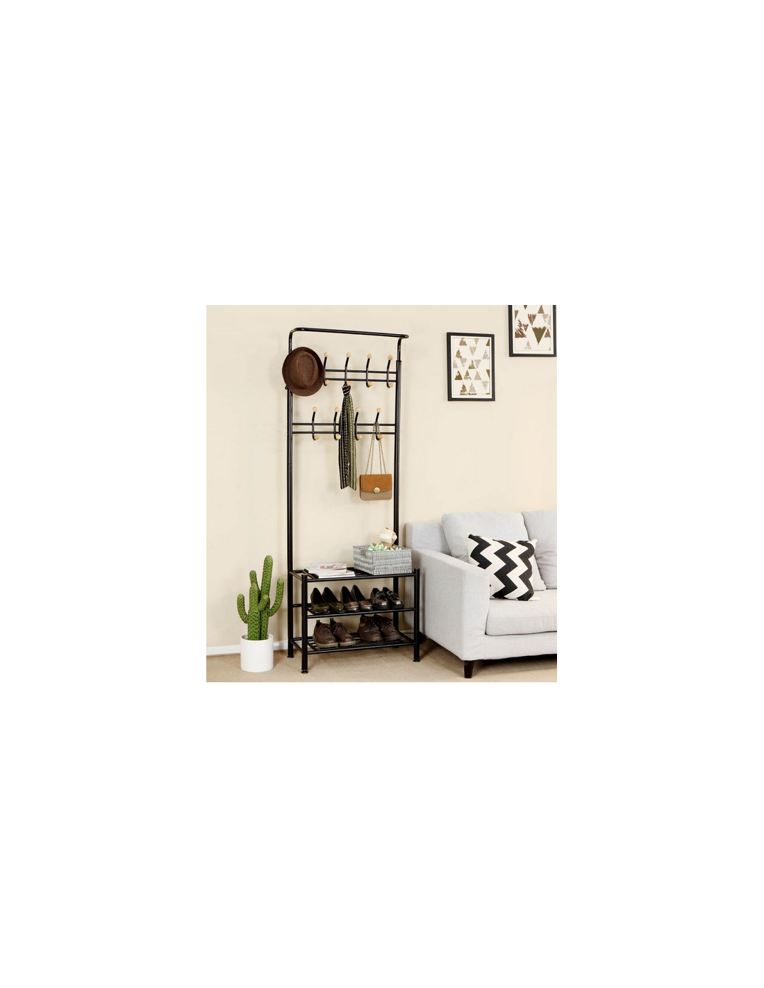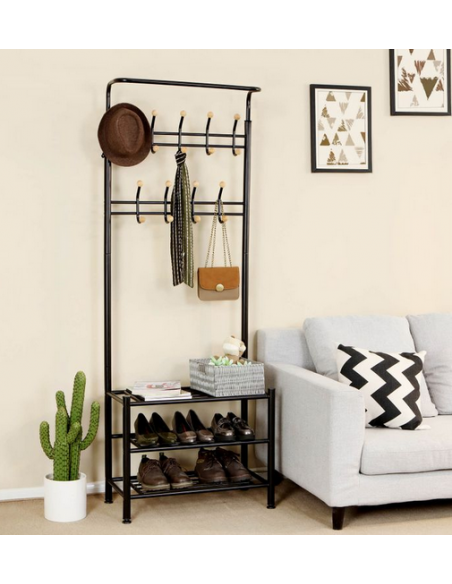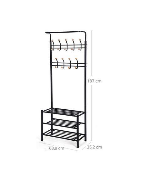 Garderobe stativ udført i et design af sortlakeret metal. Stativet måler 187 cm i højden og 68,8 x 35,2 cm i bredde og dybde og tåler max. belastning på 40 kg.
