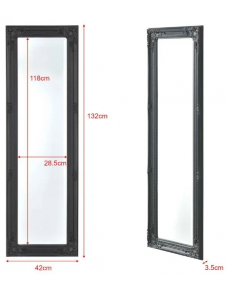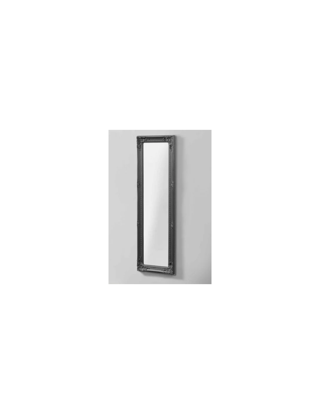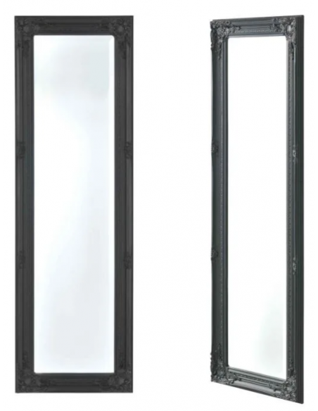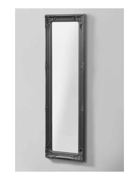 Vægspejl udført i et design af mørkegrå lakeret eucalyptustræ. Spejlet måler 132 x 42 cm og kan hænges både lodret og vandret.