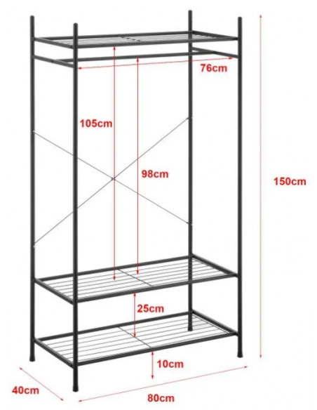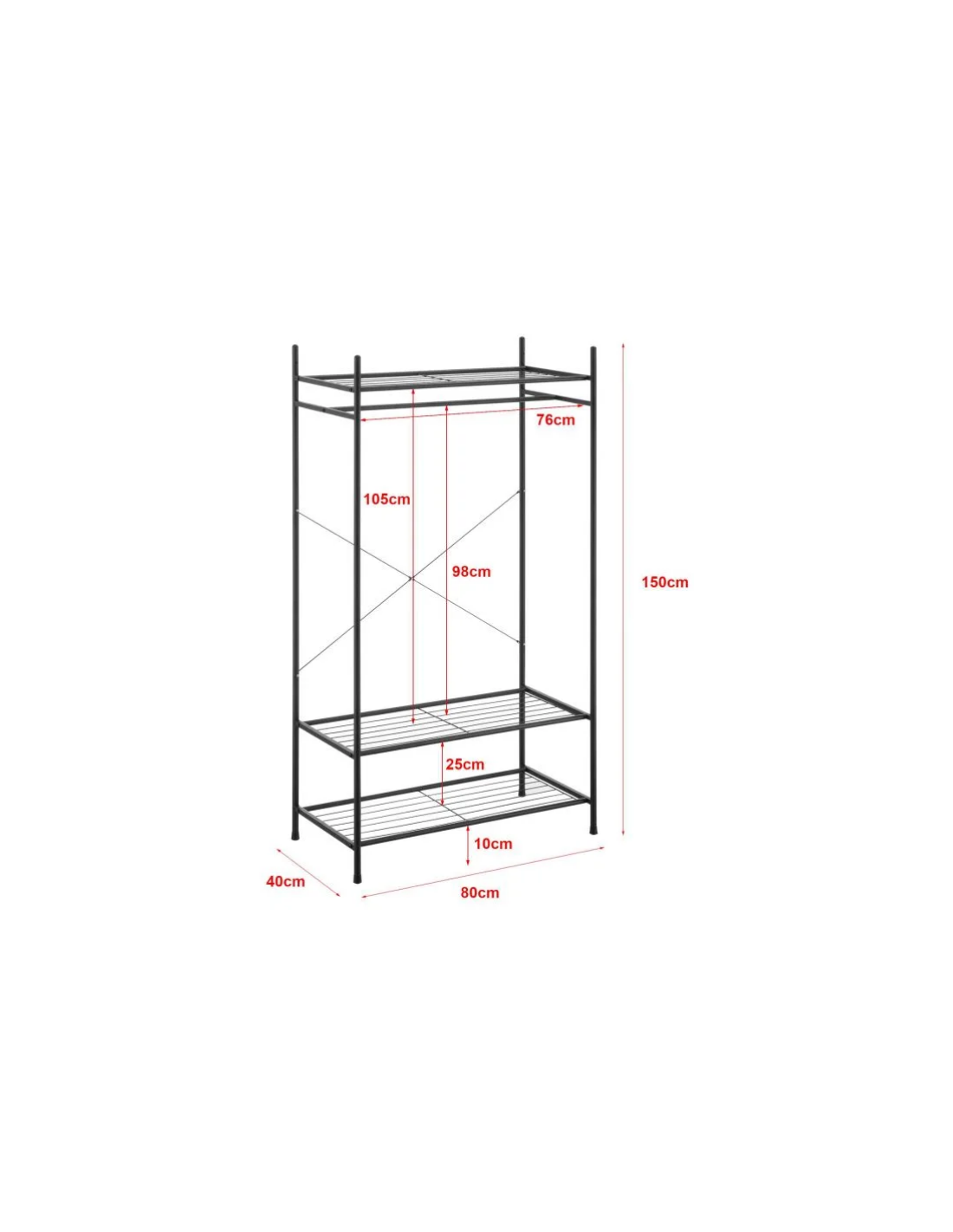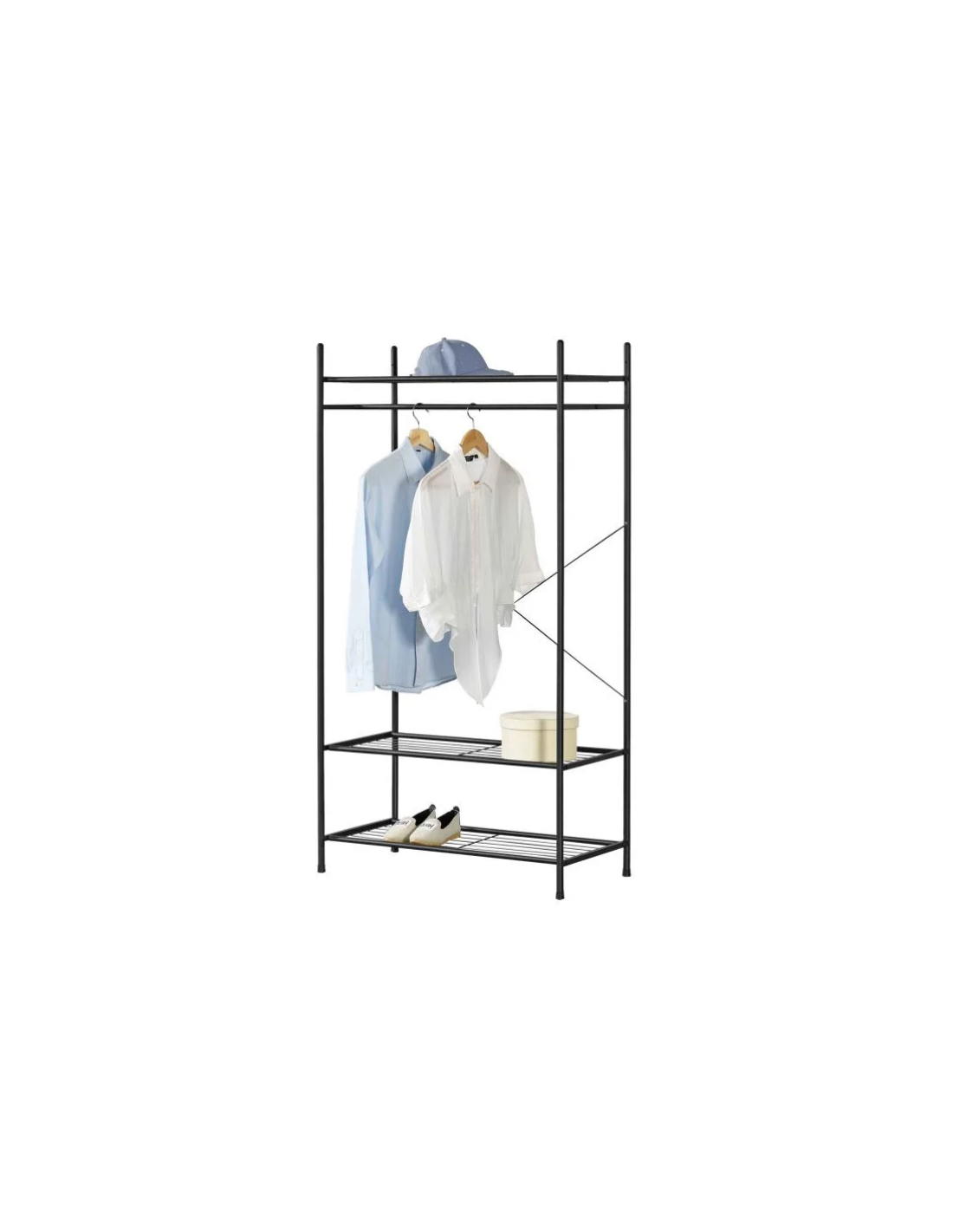 Garderobe stativ udført i et design af sortlakeret metal. Garderoben måler 150 cm i højden og 80 x 40 cm i bredde og dybde.