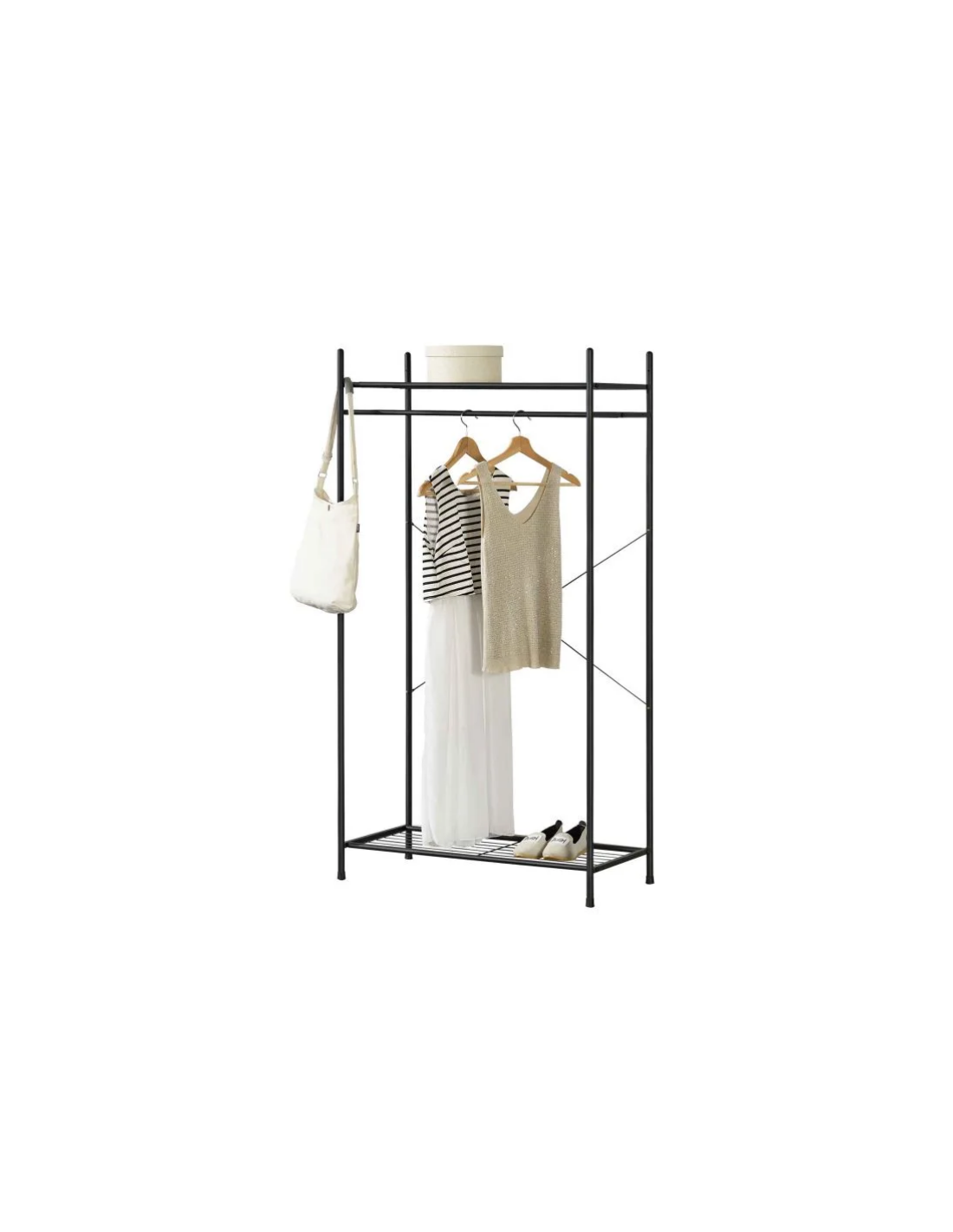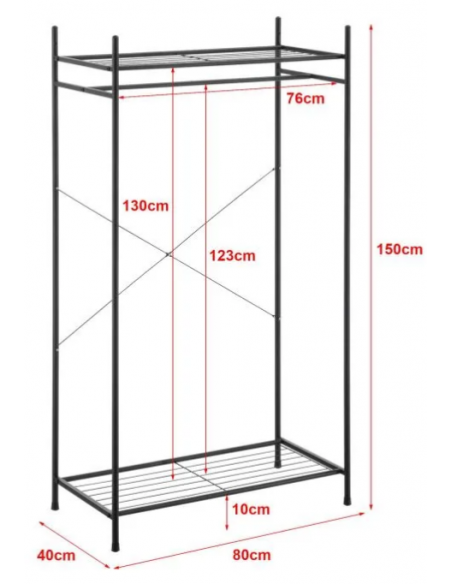 Garderobe stativ udført i et design af sortlakeret metal. Garderoben måler 150 cm i højden og 80 x 40 cm i bredde og dybde.