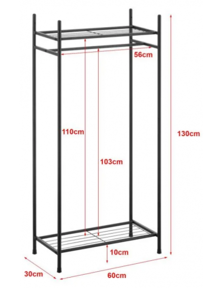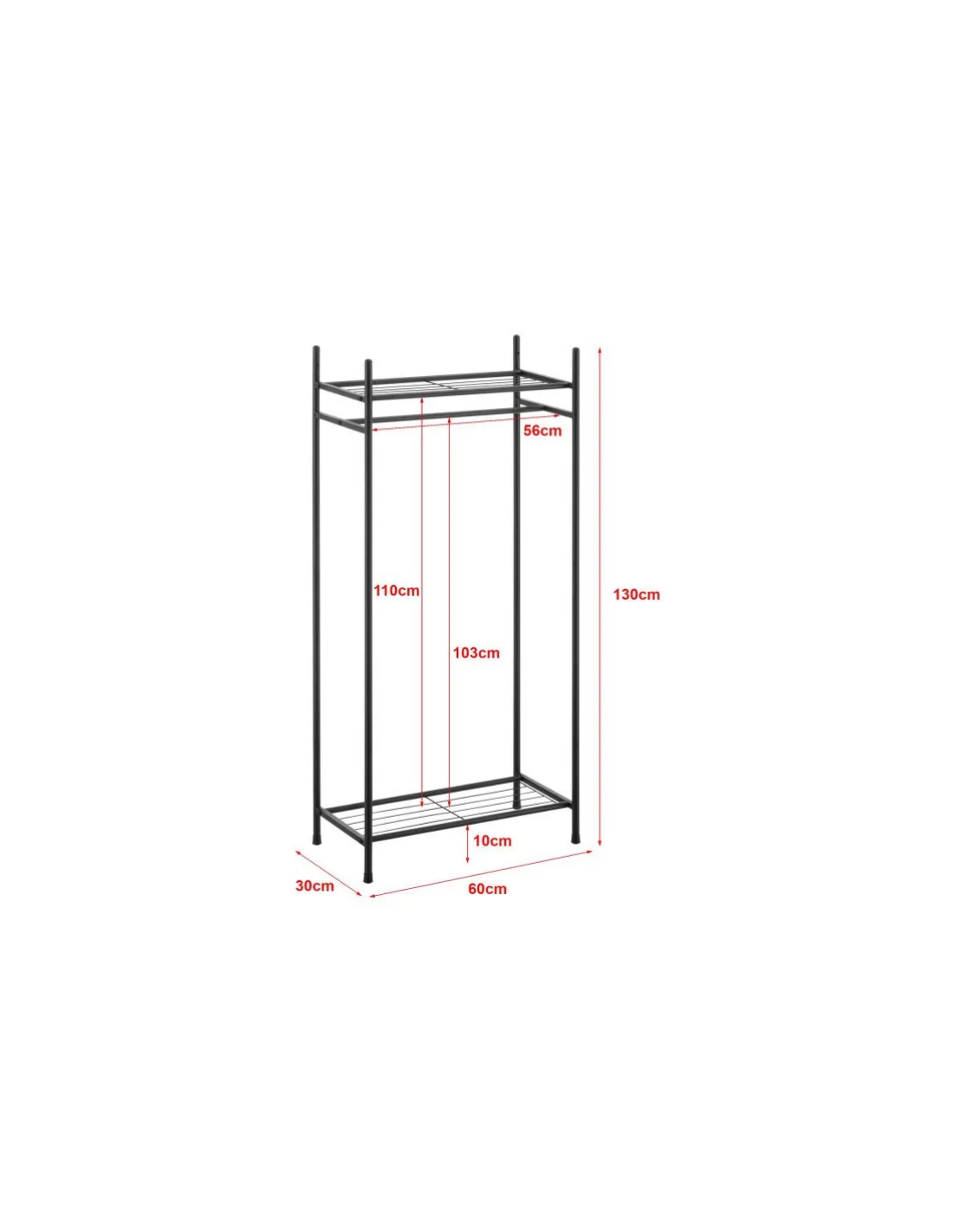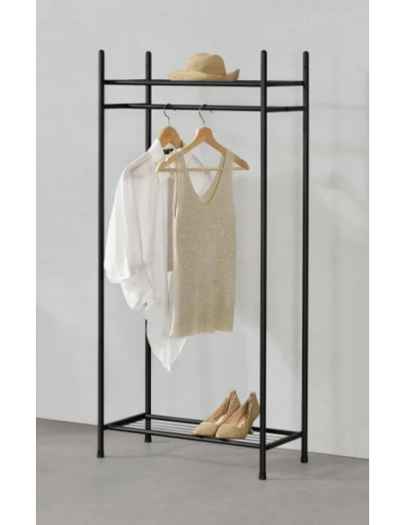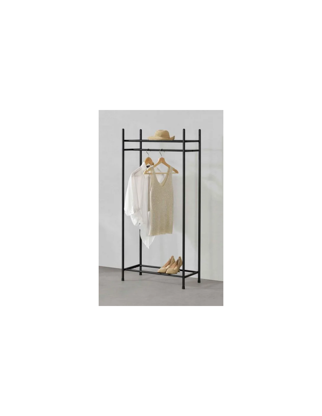 Garderobe stativ udført i et design af sortlakeret metal. Garderoben måler 130 cm i højden og 60 x 30 cm i bredde og dybde.