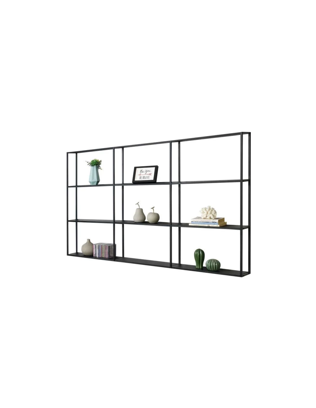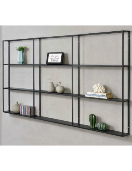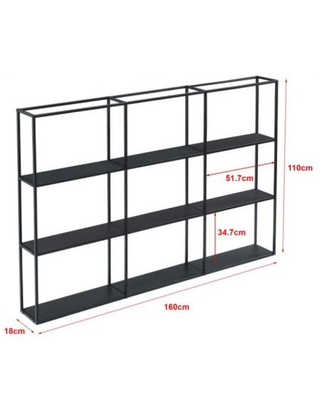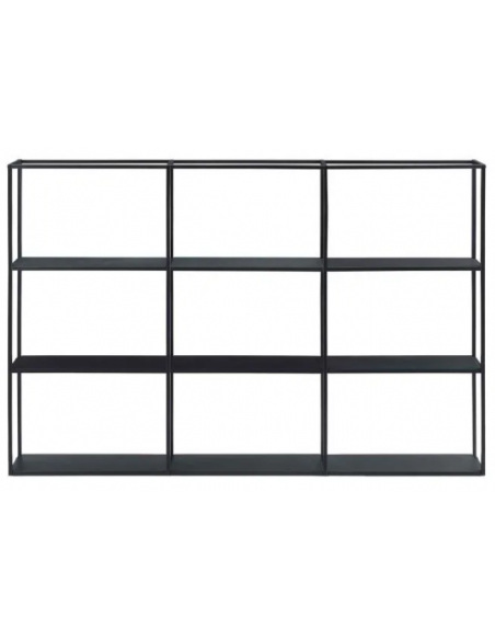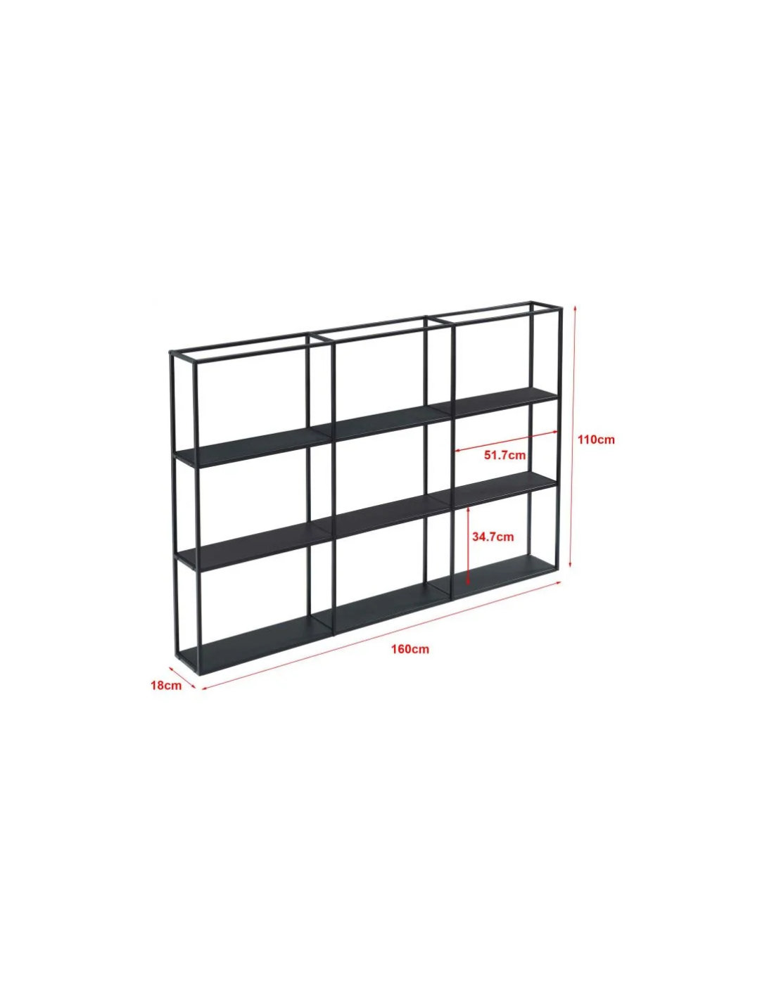 Hyldesystem udført i et design af sortlakeret metal. Hyldesystemet måler 110 cm i højden og 160 x 18 cm i bredde og dybde.