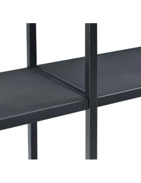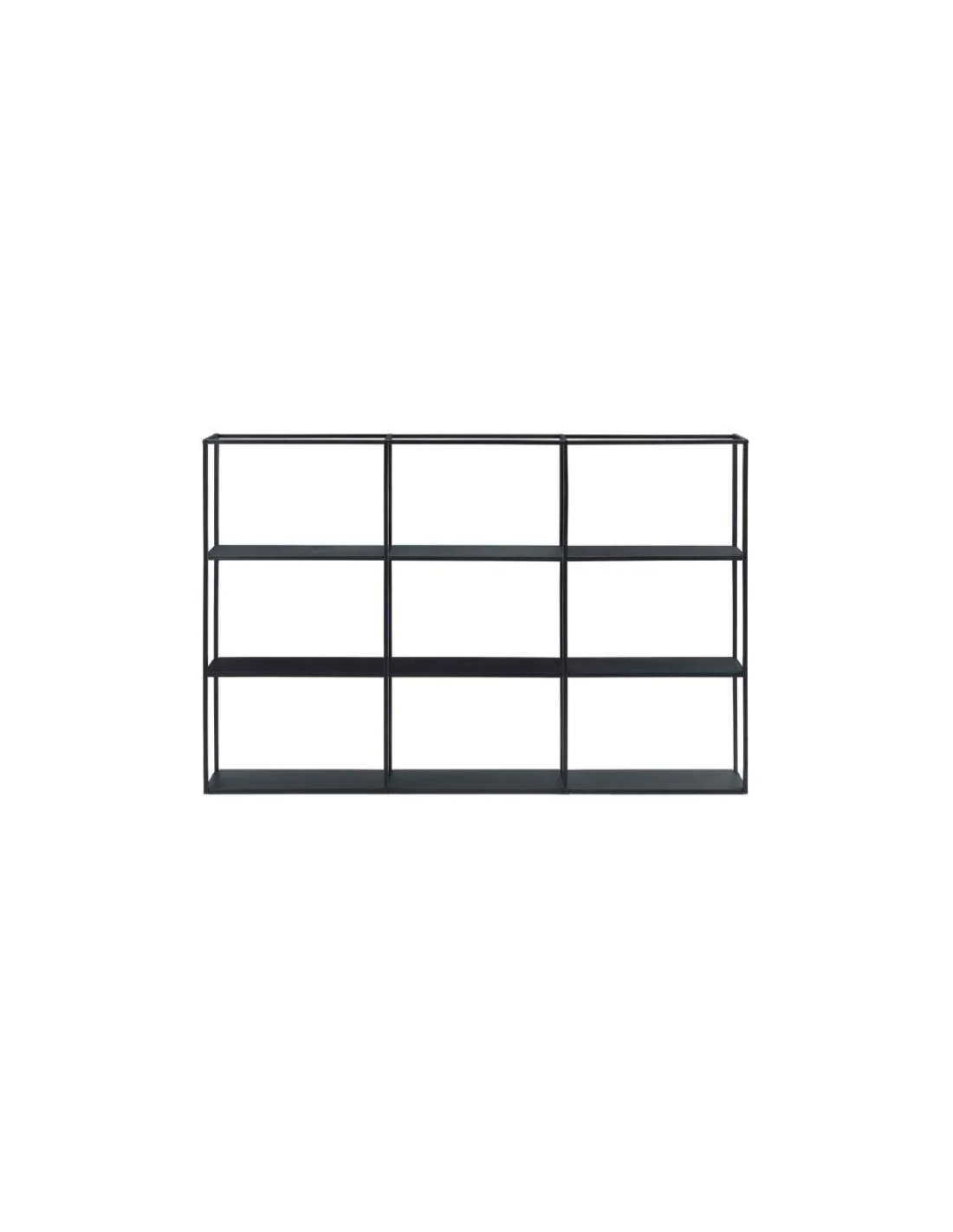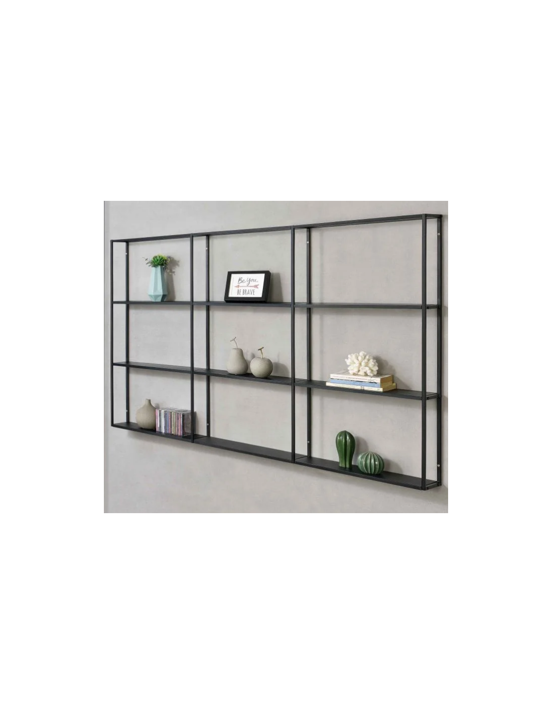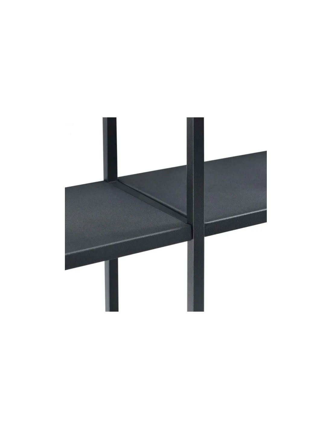 Hyldesystem udført i et design af sortlakeret metal. Hyldesystemet måler 110 cm i højden og 160 x 18 cm i bredde og dybde.