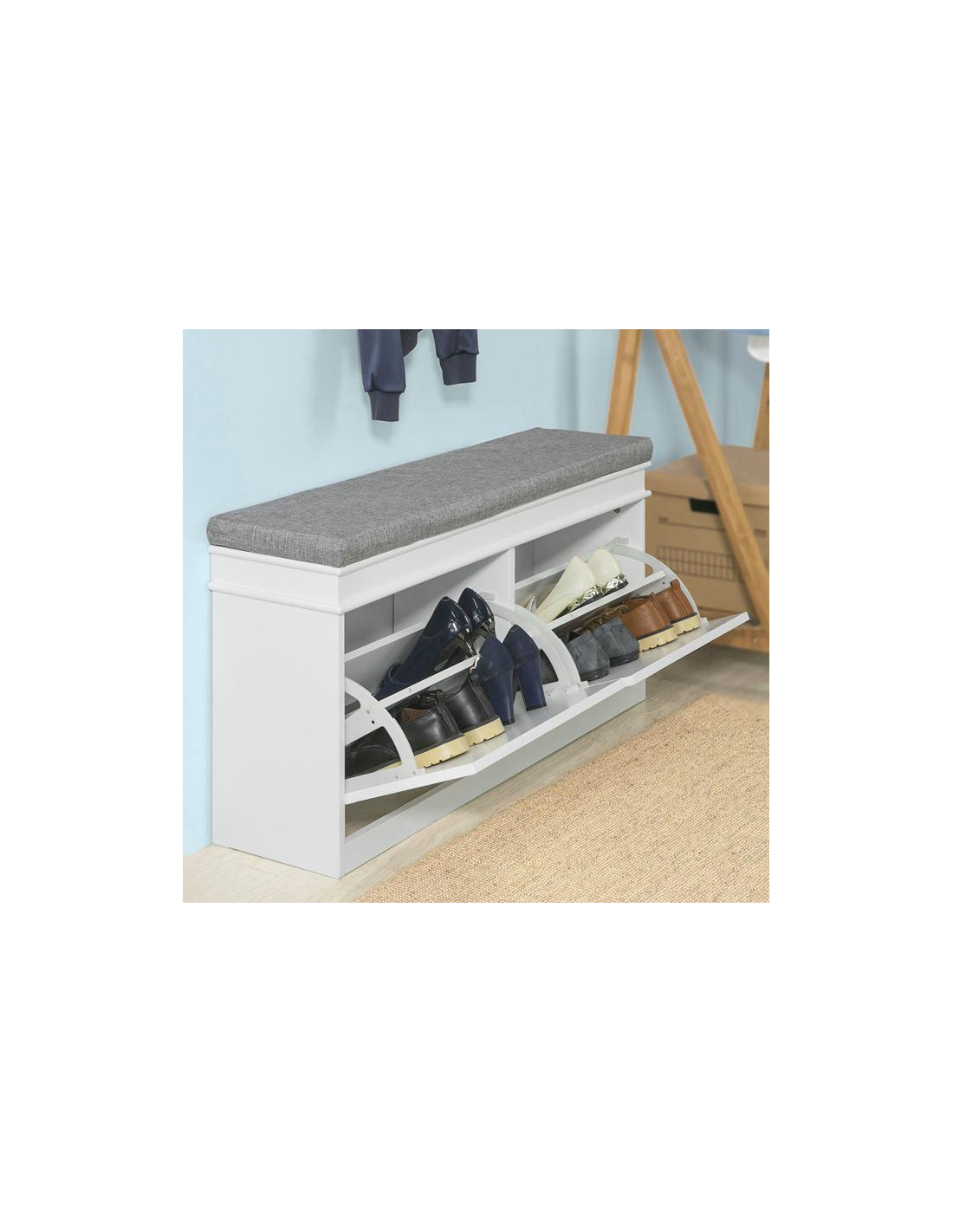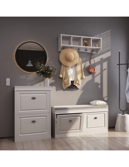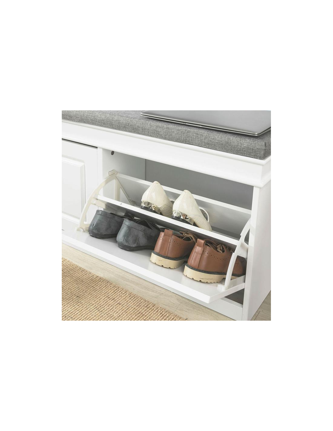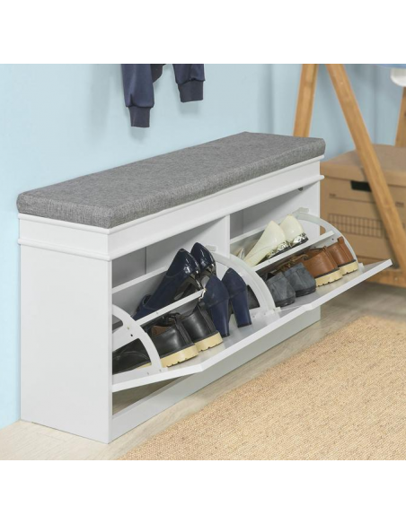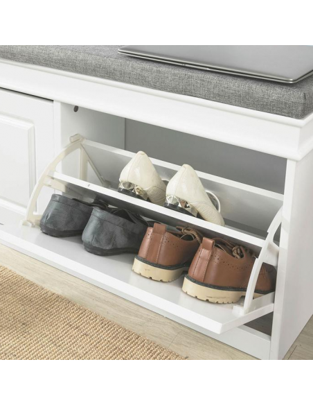 Skobænk i møbelplade og polyester H52 x B104 cm - Hvid/Grå