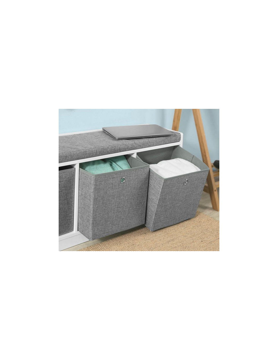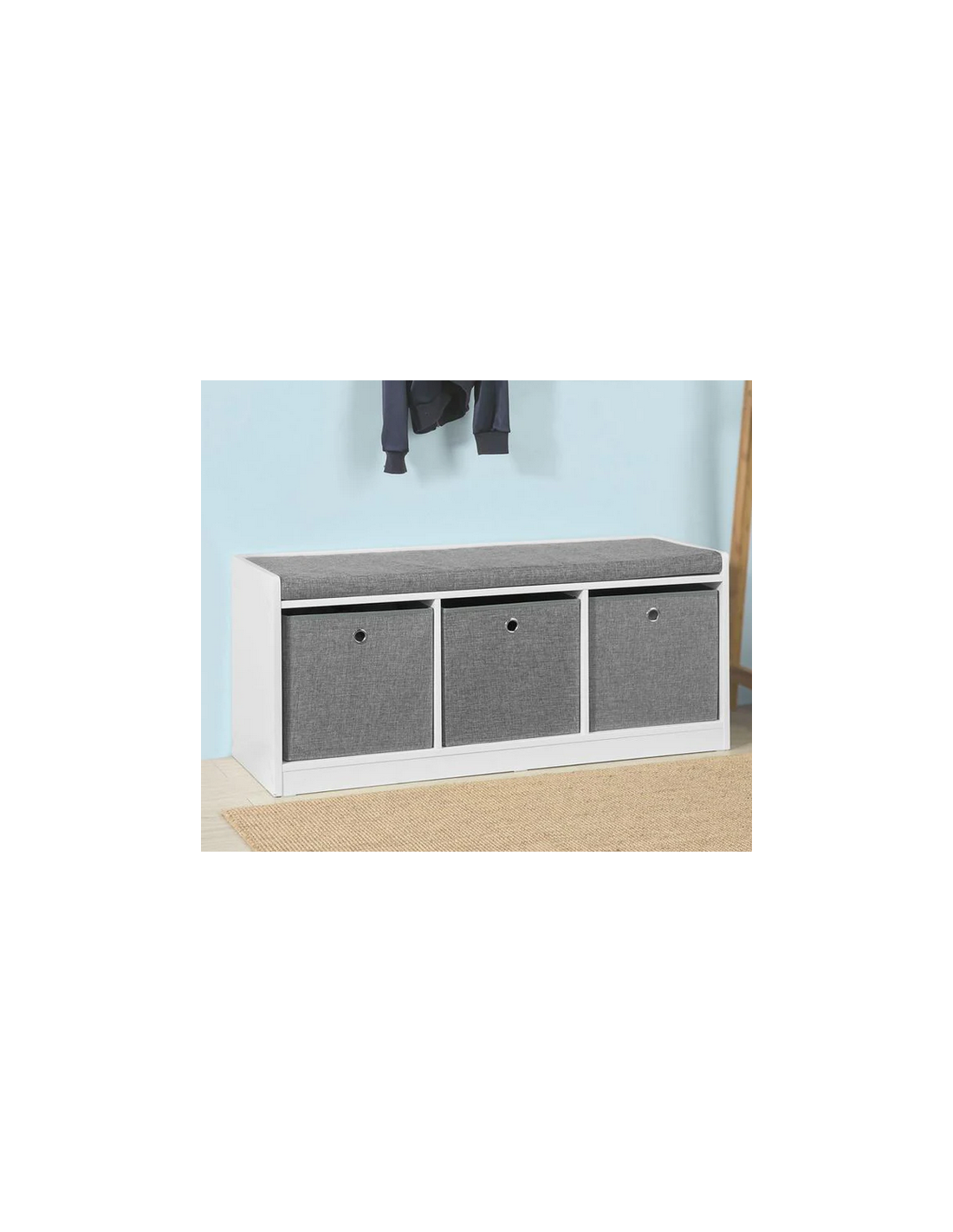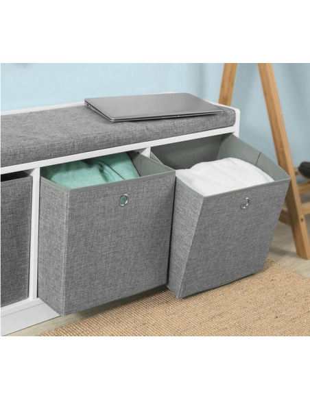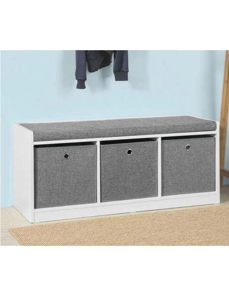 Skobænk i møbelplade og polyester H45 x B102 cm - Hvid/Grå