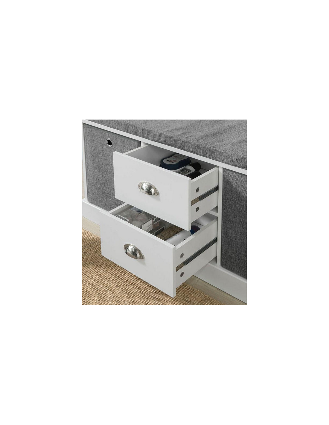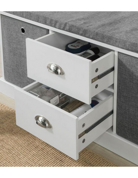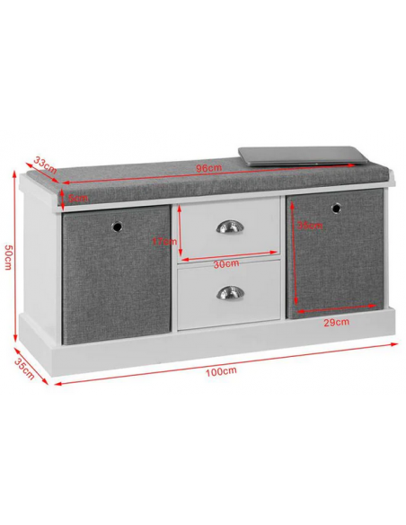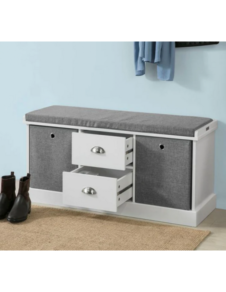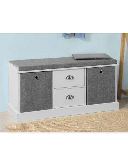 Skobænk i møbelplade og polyester H50 x B100 cm - Hvid/Grå