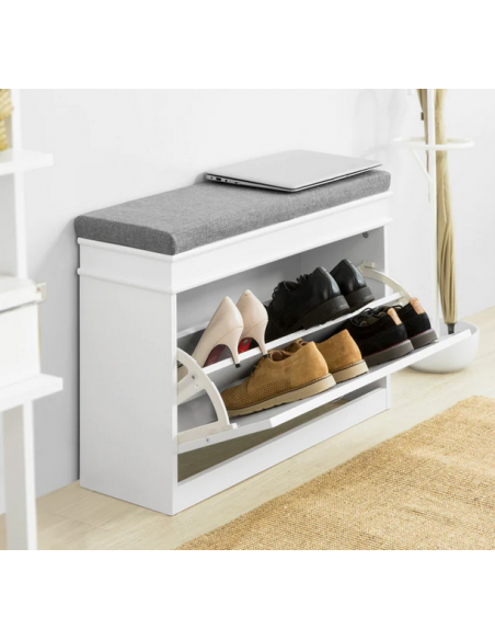 Skobænk i møbelplade og polyester H51 x B75 cm - Hvid/Grå