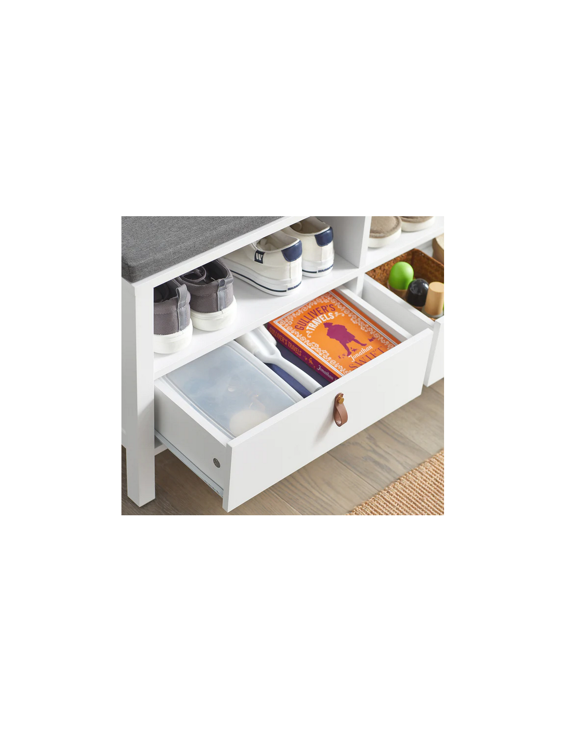 Skobænk i mdf og polyester H46 x B90 cm - Hvid/Grå