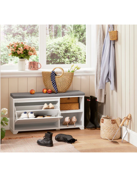 Skobænk i møbelplade og polyester H46 x B90 cm - Hvid/Grå