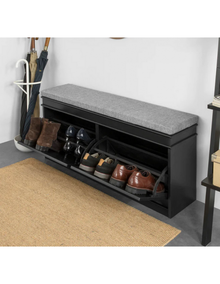 Skobænk i møbelplade og polyester H52 x B104 cm - Sort/Grå