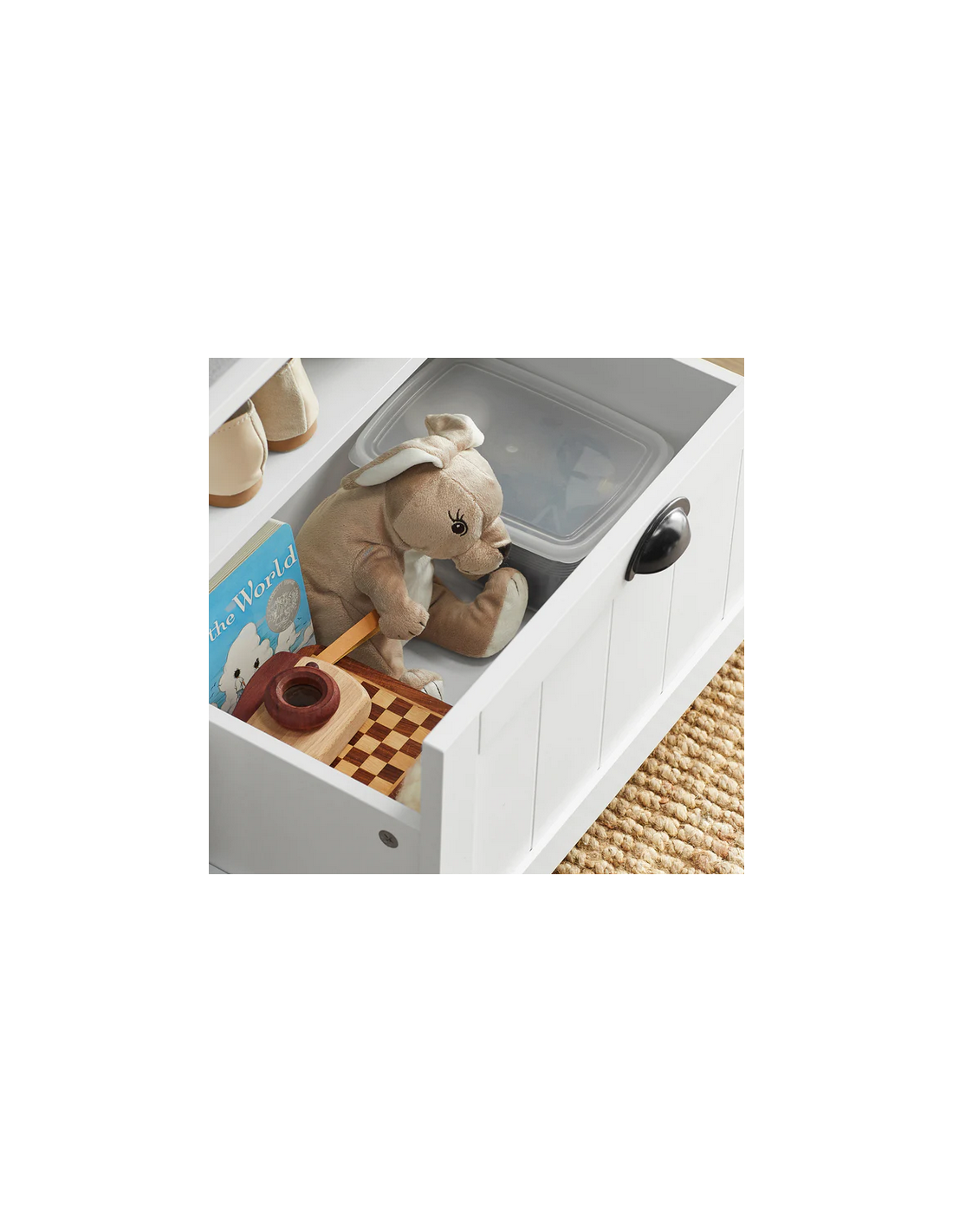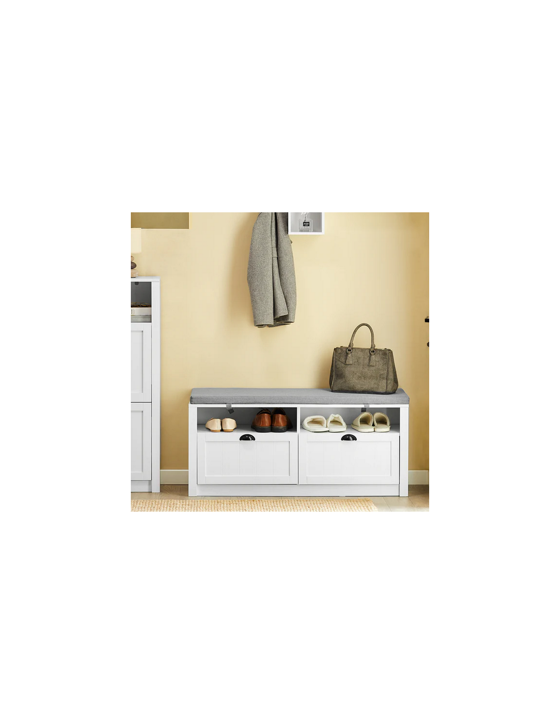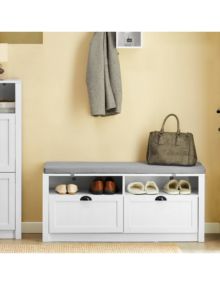 Skobænk i mdf og polyester H47 x B110 cm - Hvid/Grå