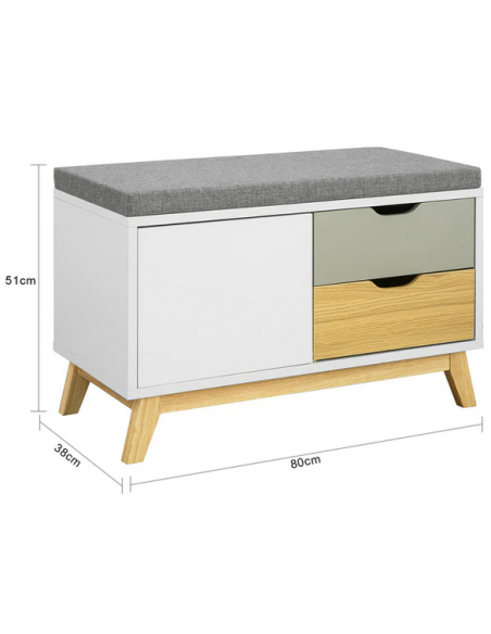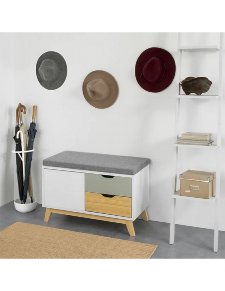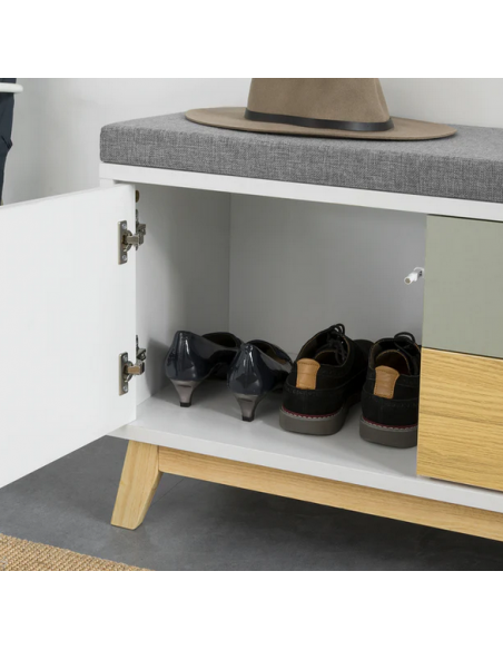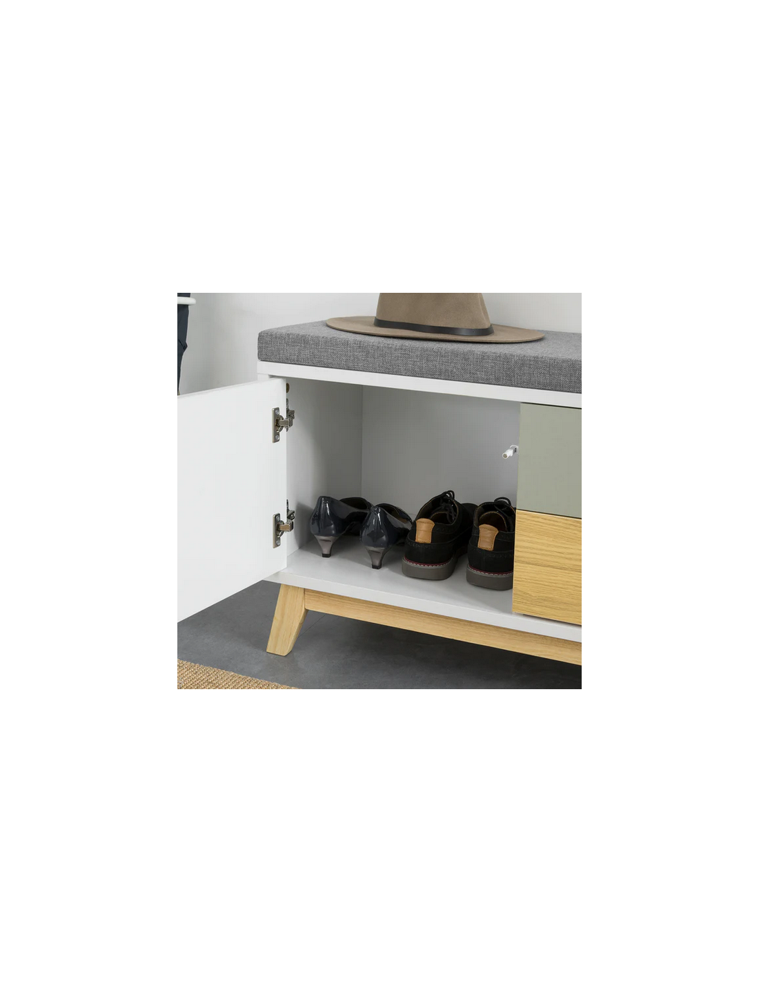 Skobænk i mdf og polyester H51 x B80 cm - Hvid/Natur