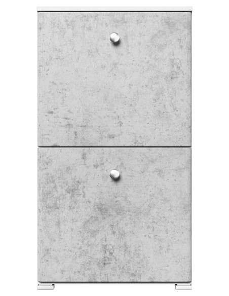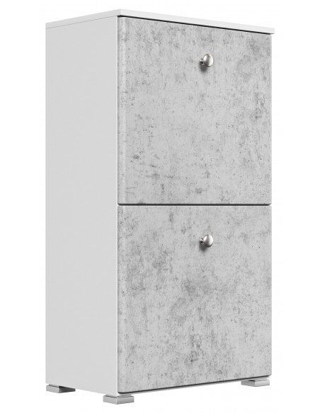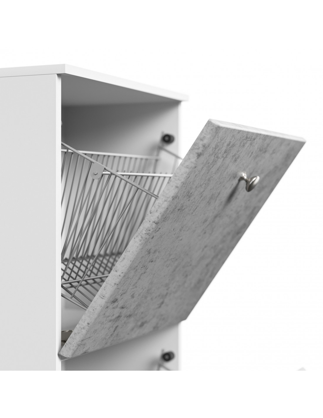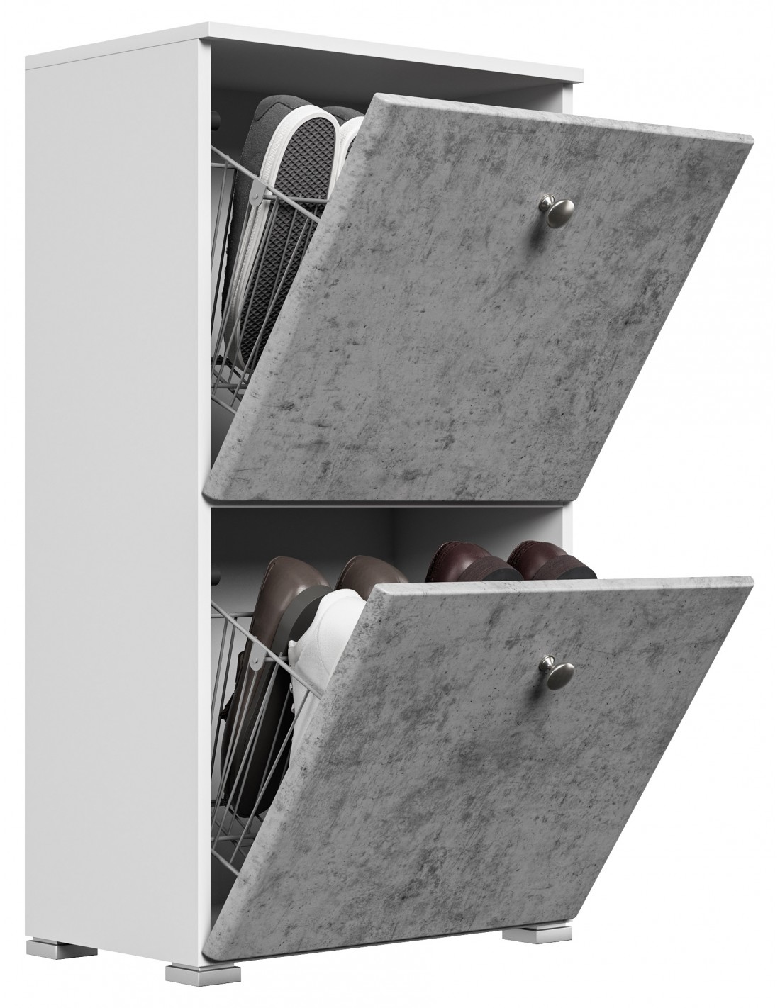 Skoskab udført i et design af mat hvid og betongrå mdf og møbelplade. Skoskabet måler 95,7 cm i højden og 52,4 x 31,6 cm i bredde og dybde.