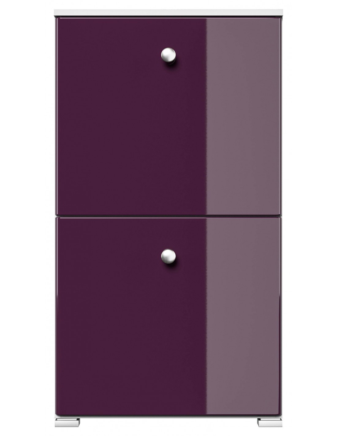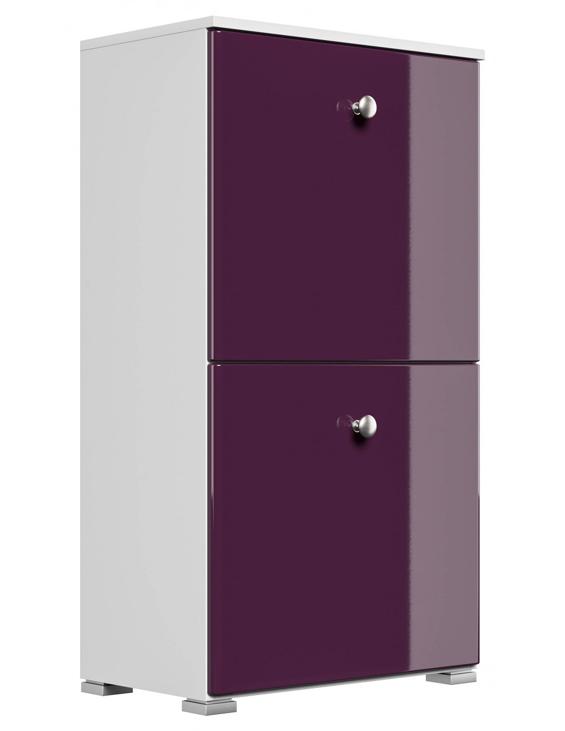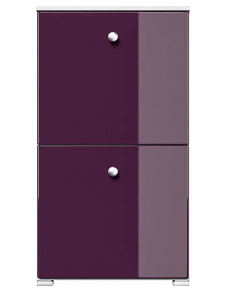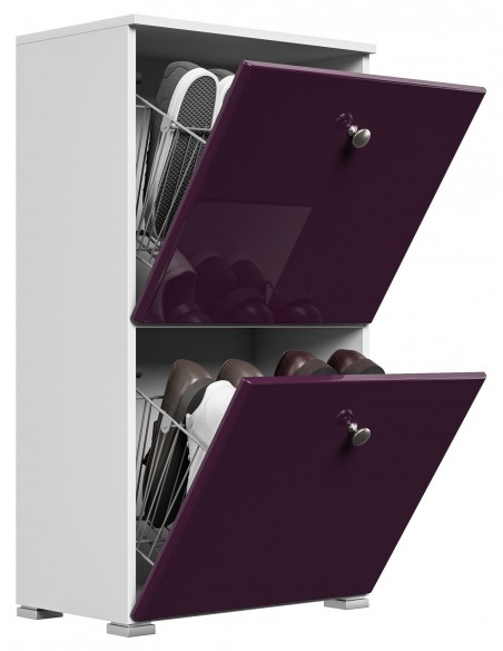 Skoskab udført i et design af mat hvid og brombærfarvet højglans mdf og møbelplade. Skoskabet måler 95,7 cm i højden og 52,4 x 31,6 cm i bredde og dybde.