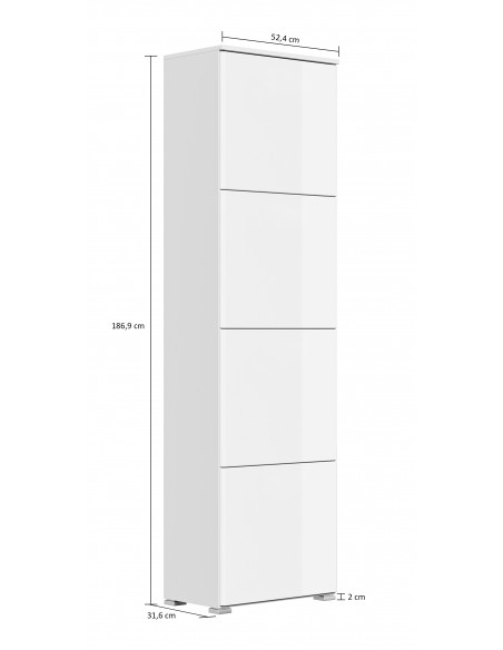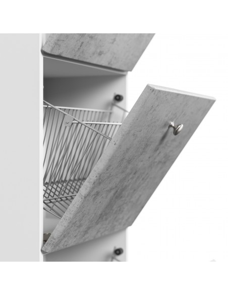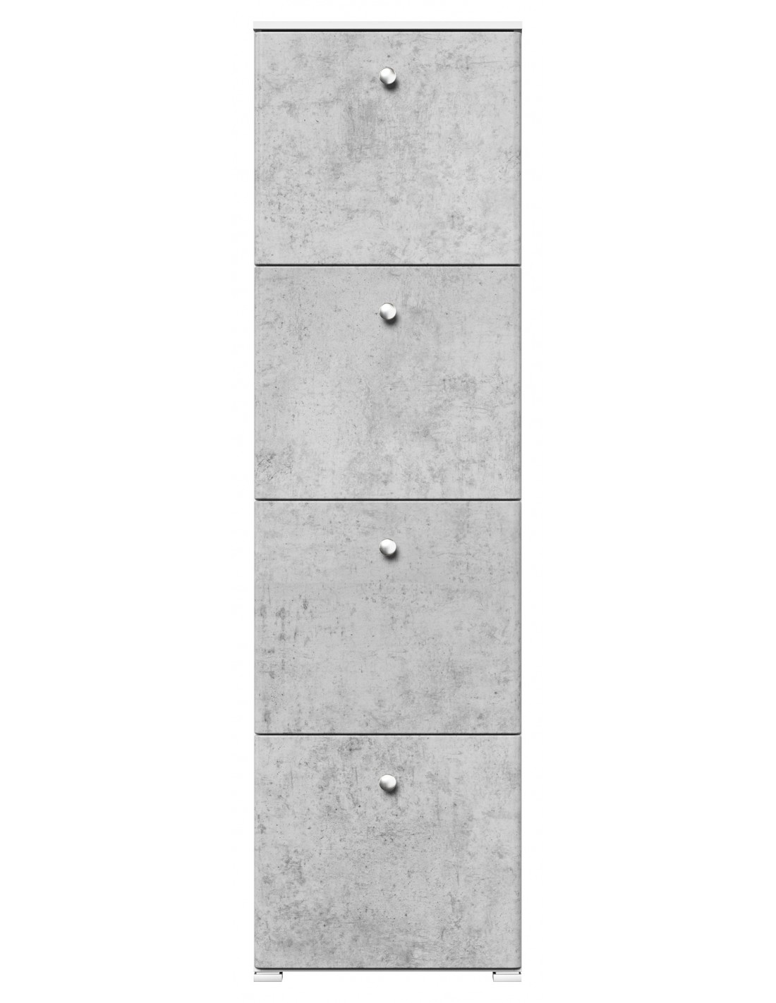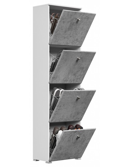 Skoskab udført i et design af mat hvid og betongrå mdf og møbelplade. Skoskabet måler 187 cm i højden og 52,4 x 31,6 cm i bredde og dybde.