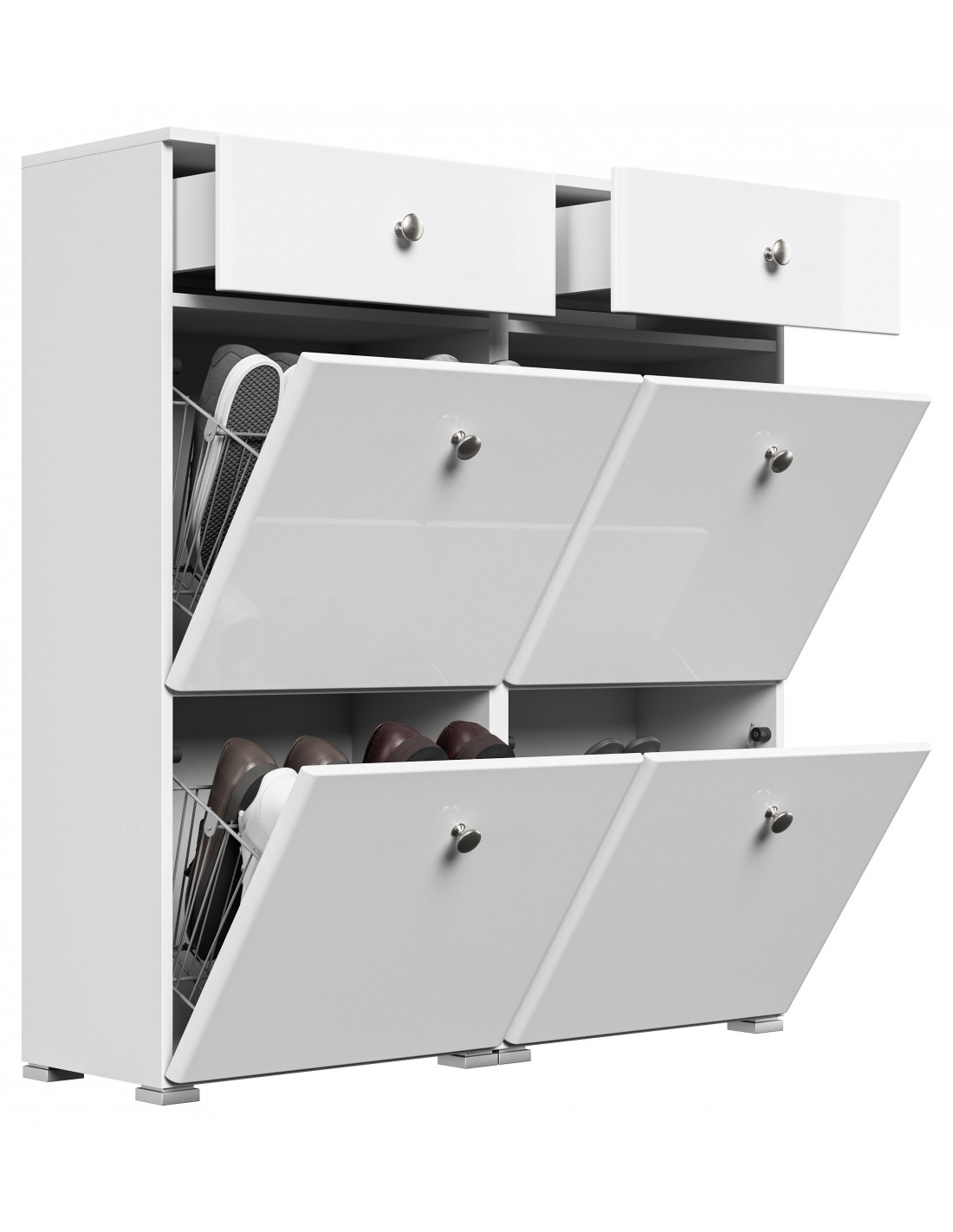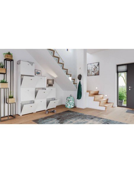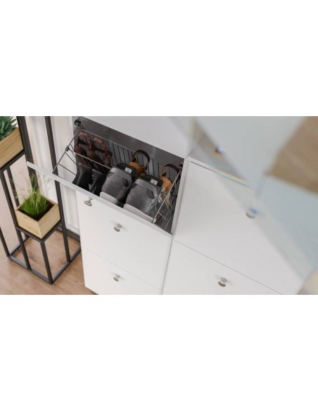 Skoskab i mdf og møbelplade H113,9 x B104,8 cm - Mat hvid/Hvid højglans