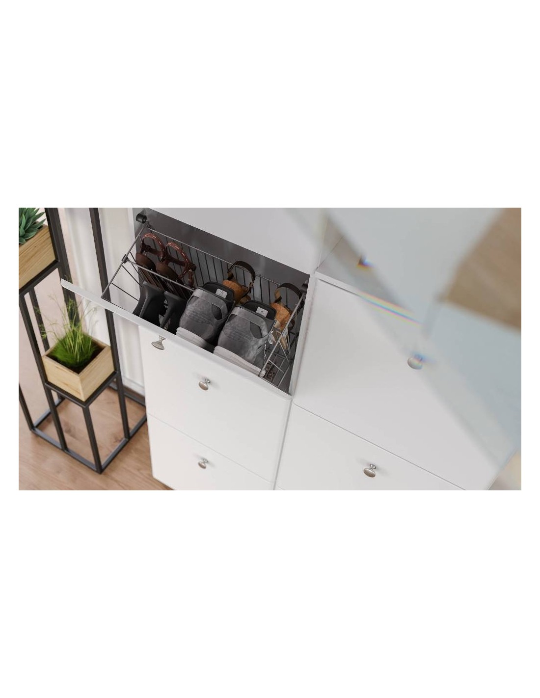 • Rummer op til 4 par sko op til str. 46 i hvert rum