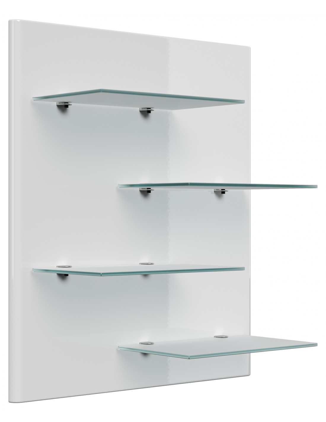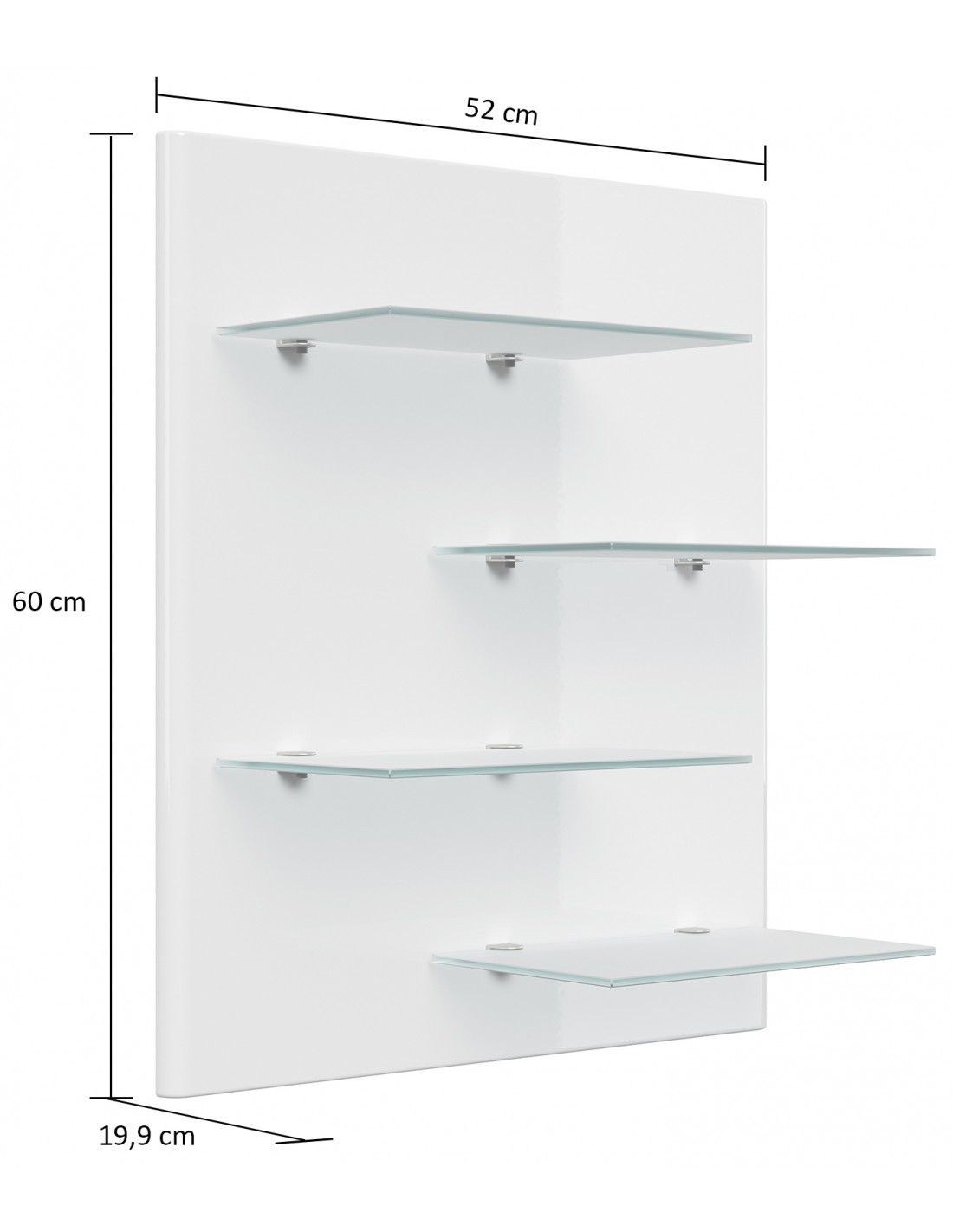 Hylde i mdf og glas H60 x B52 cm - Hvid højglans