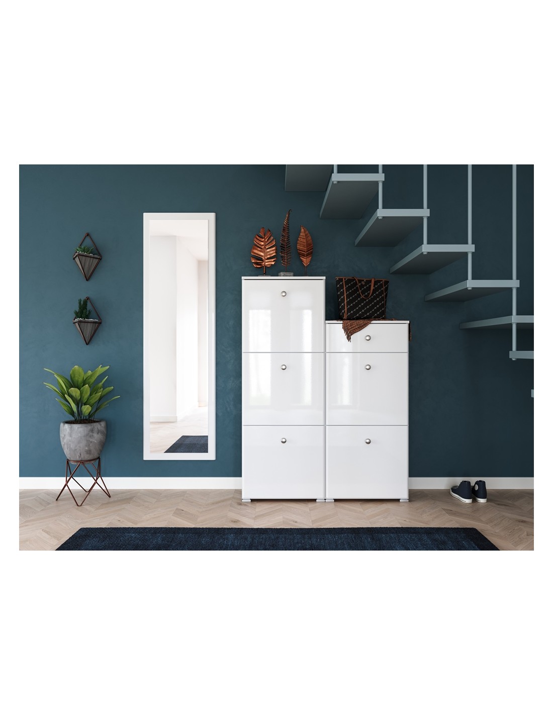 Vægspejl i mdf og glas H170 x B50 cm - Hvid højglans