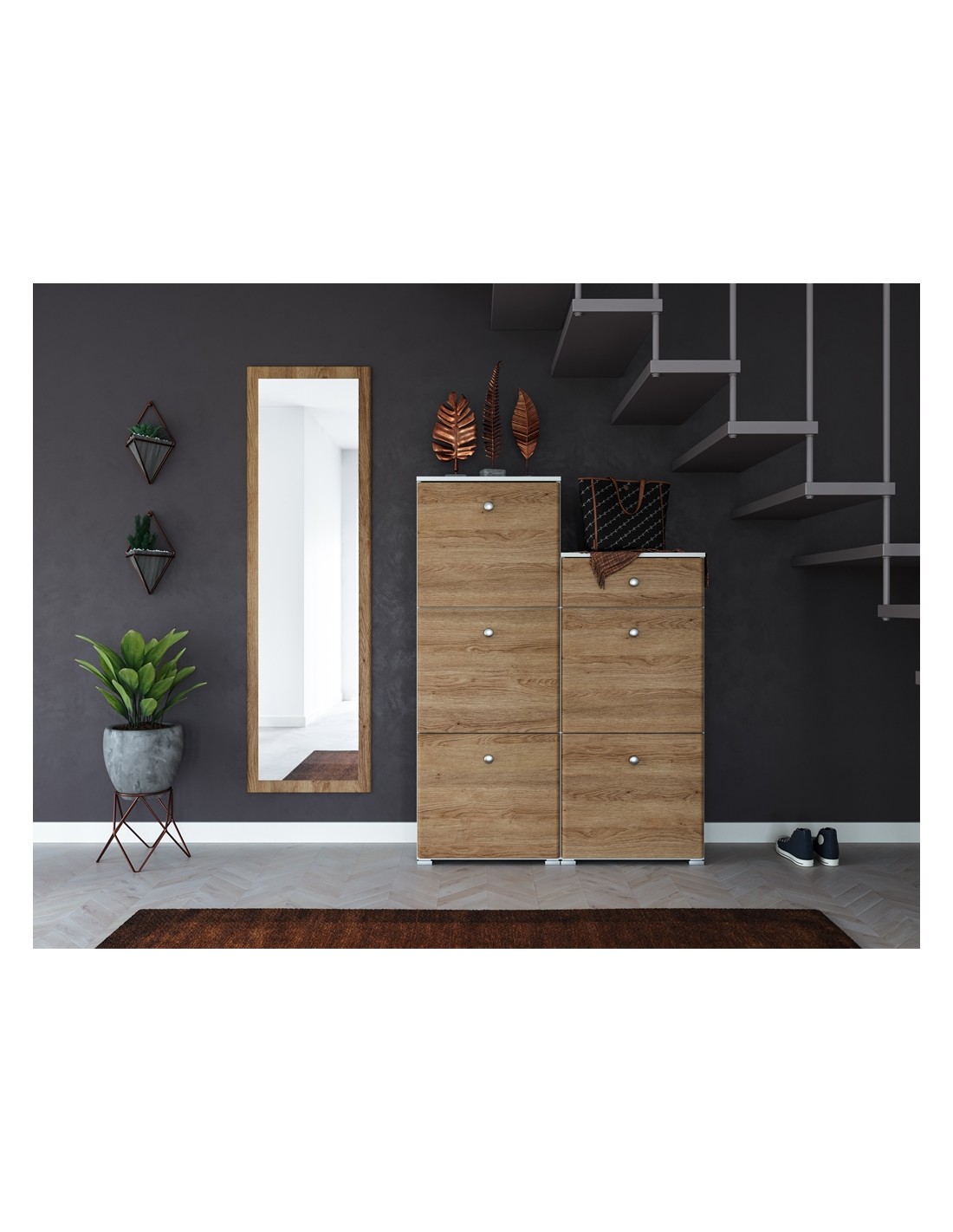 Vægspejl i mdf og glas H170 x B50 cm - Eg