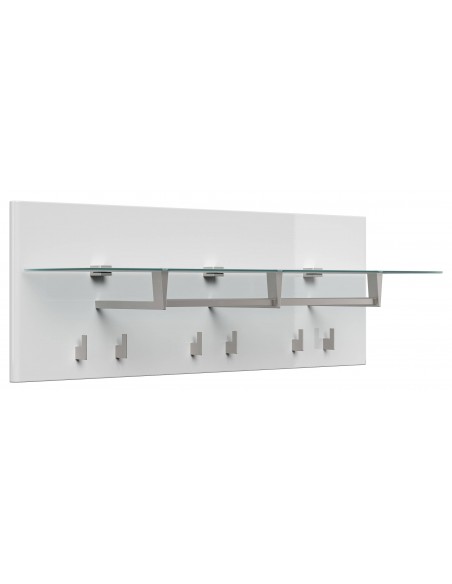 Garderobe med knager i mdf og glas H36 x B100 cm - Hvid højglans