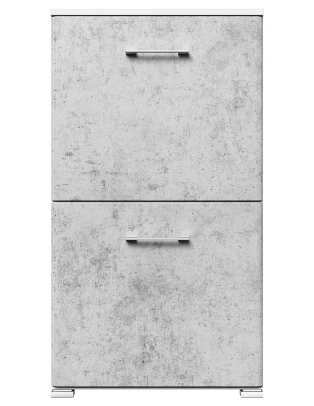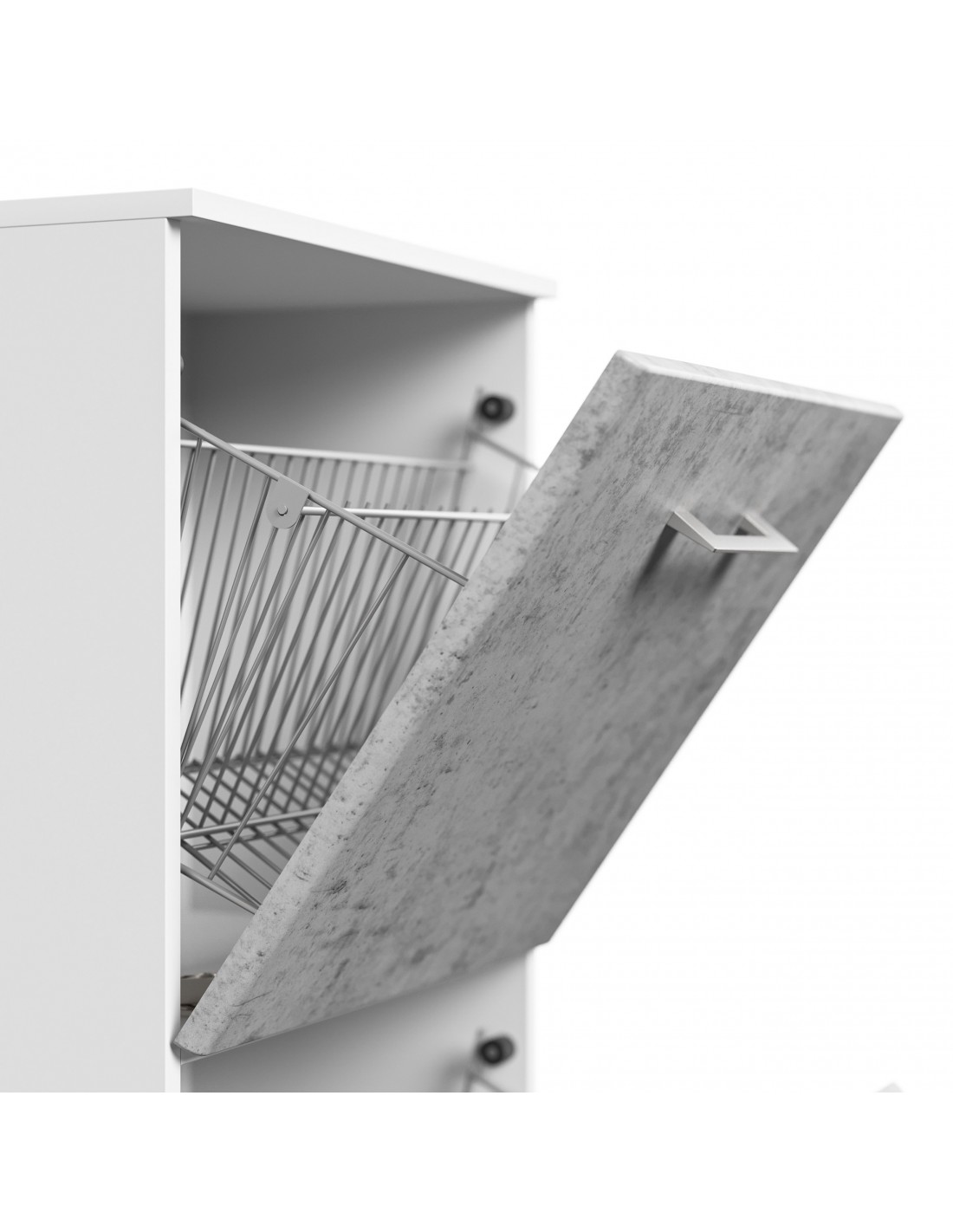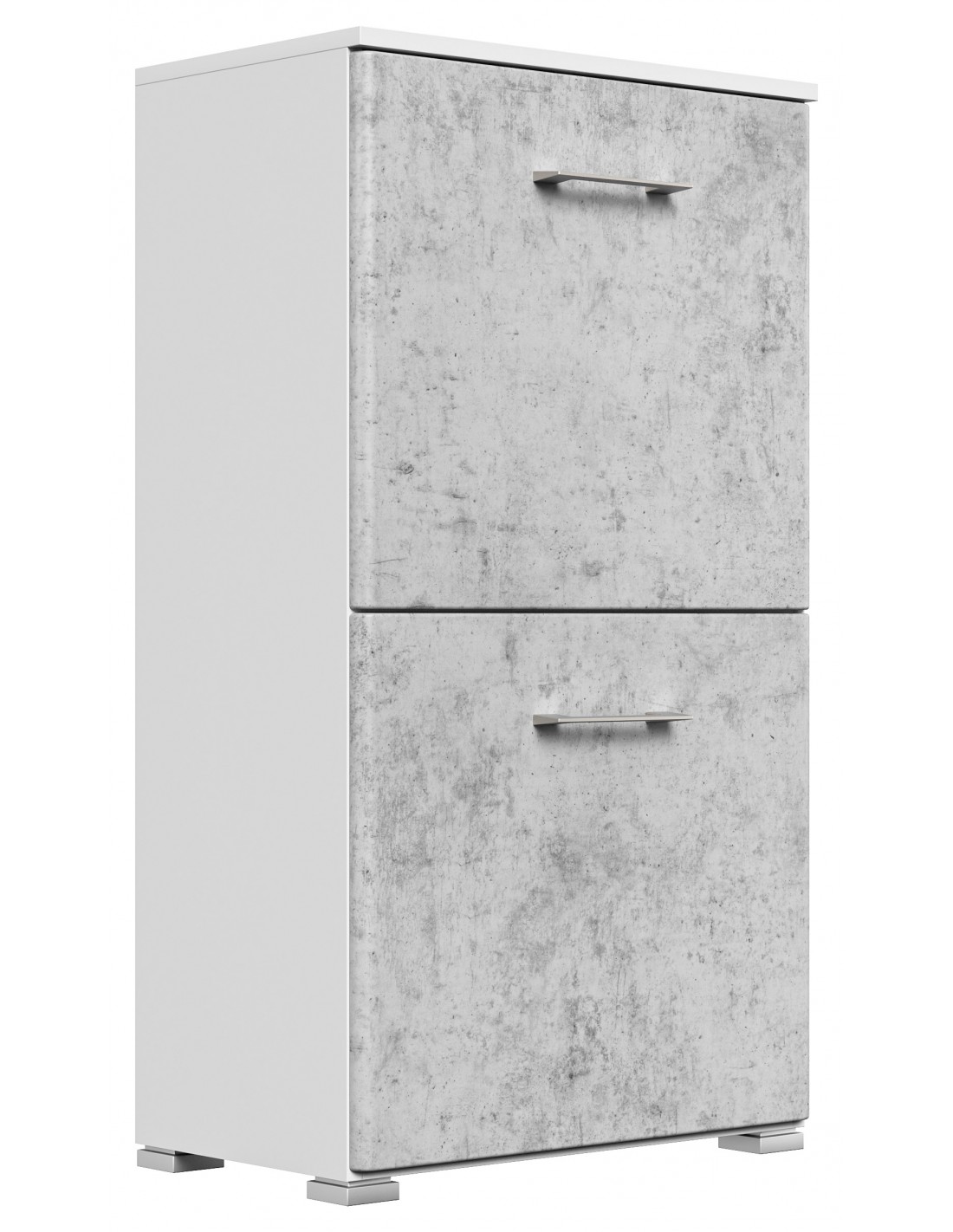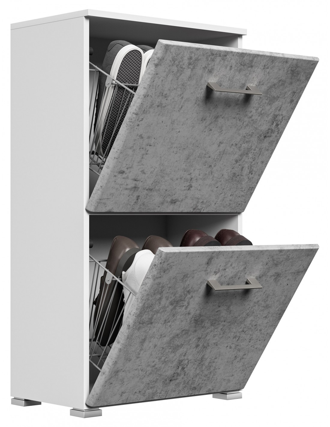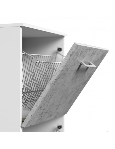 Skoskab udført i et design af mat hvid og betongrå mdf og møbelplade. Skoskabet måler 95,7 cm i højden og 52,4 x 31,6 cm i bredde og dybde.