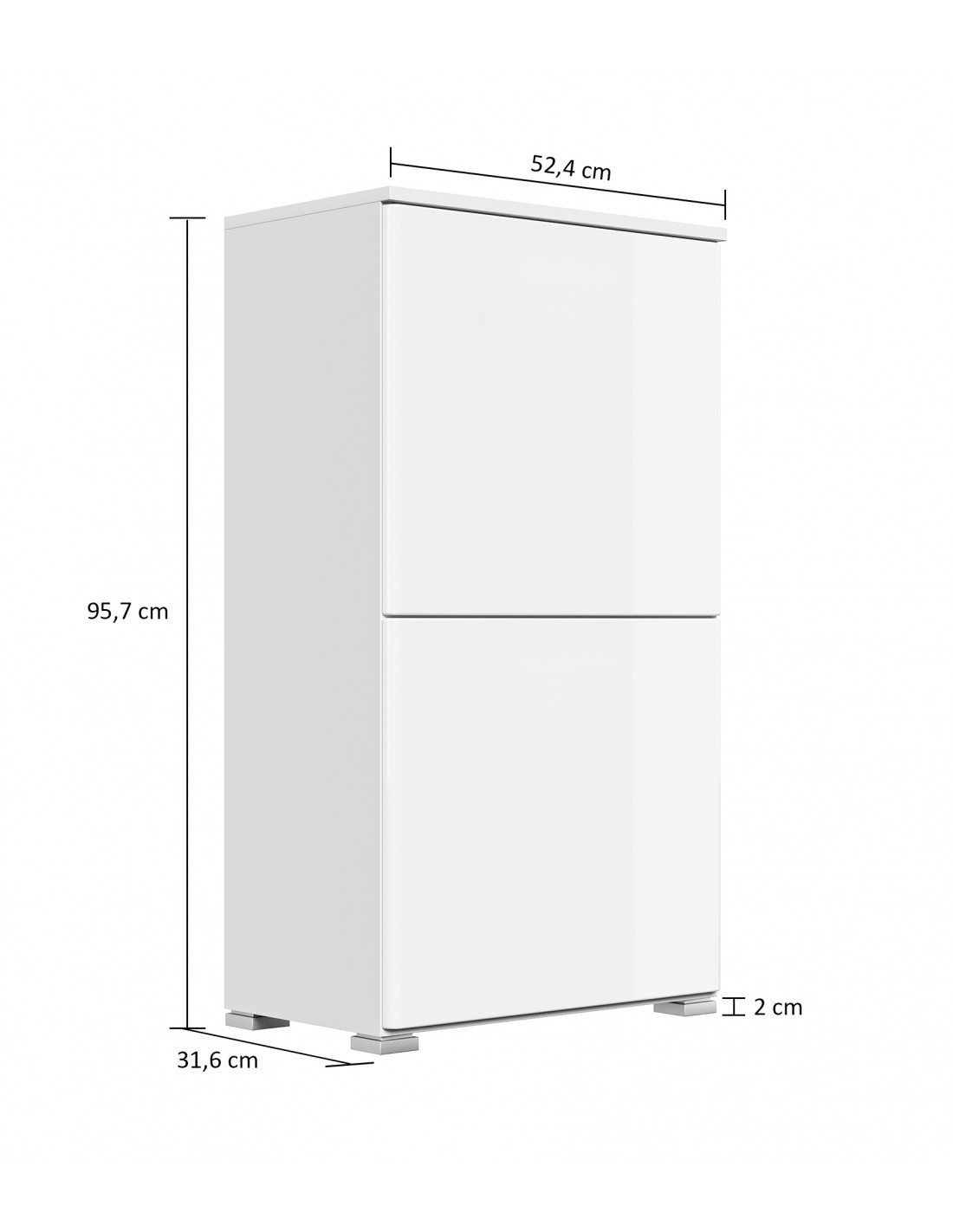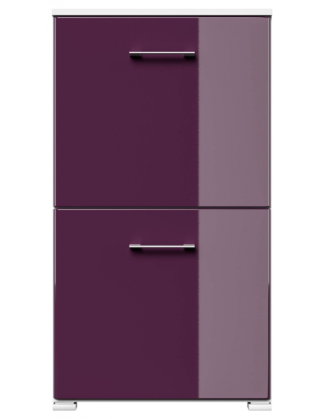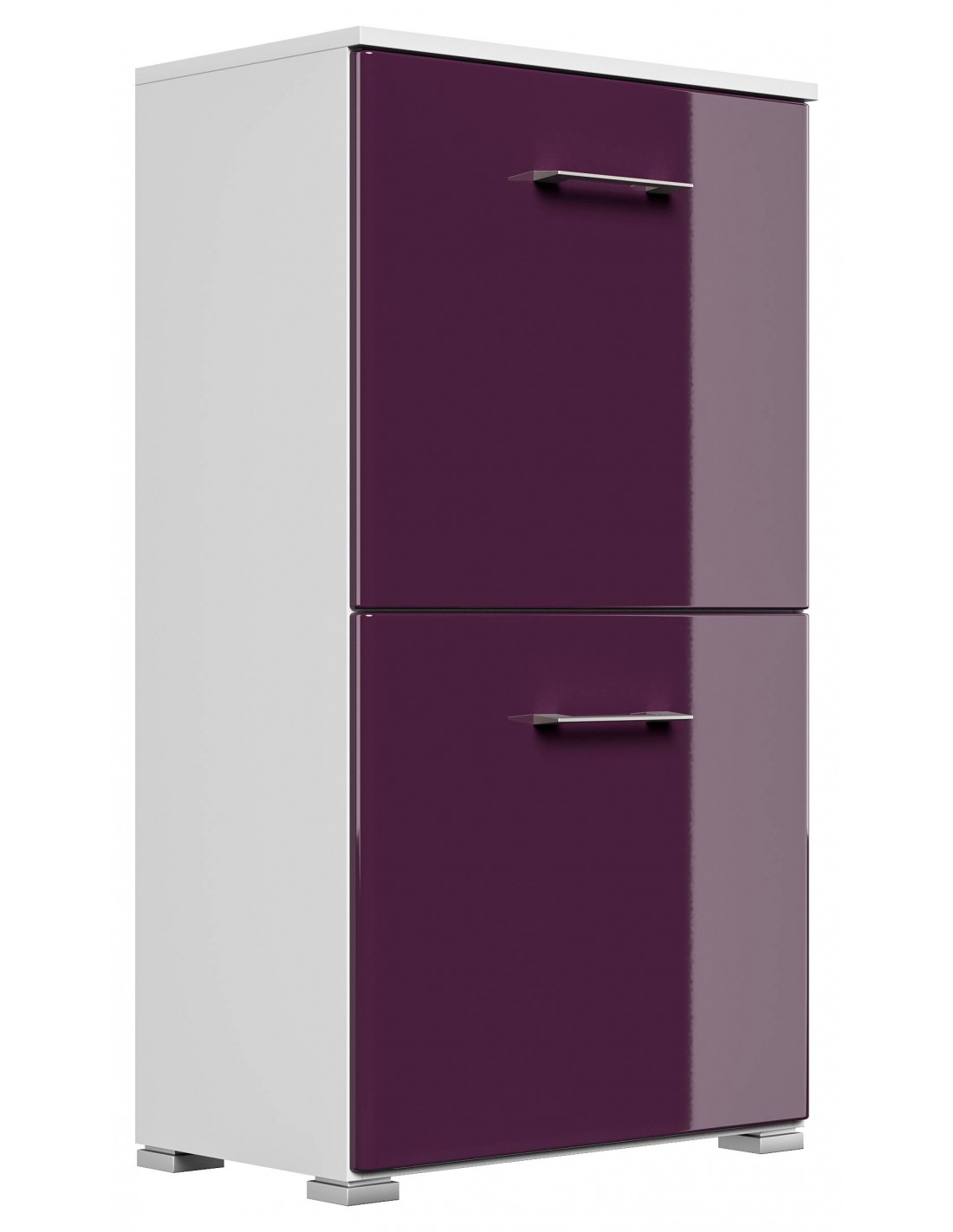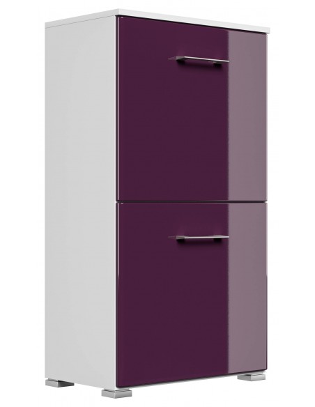 Skoskab udført i et design af mat hvid og brombærfarvet højglans mdf og møbelplade. Skoskabet måler 95,7 cm i højden og 52,4 x 31,6 cm i bredde og dybde.