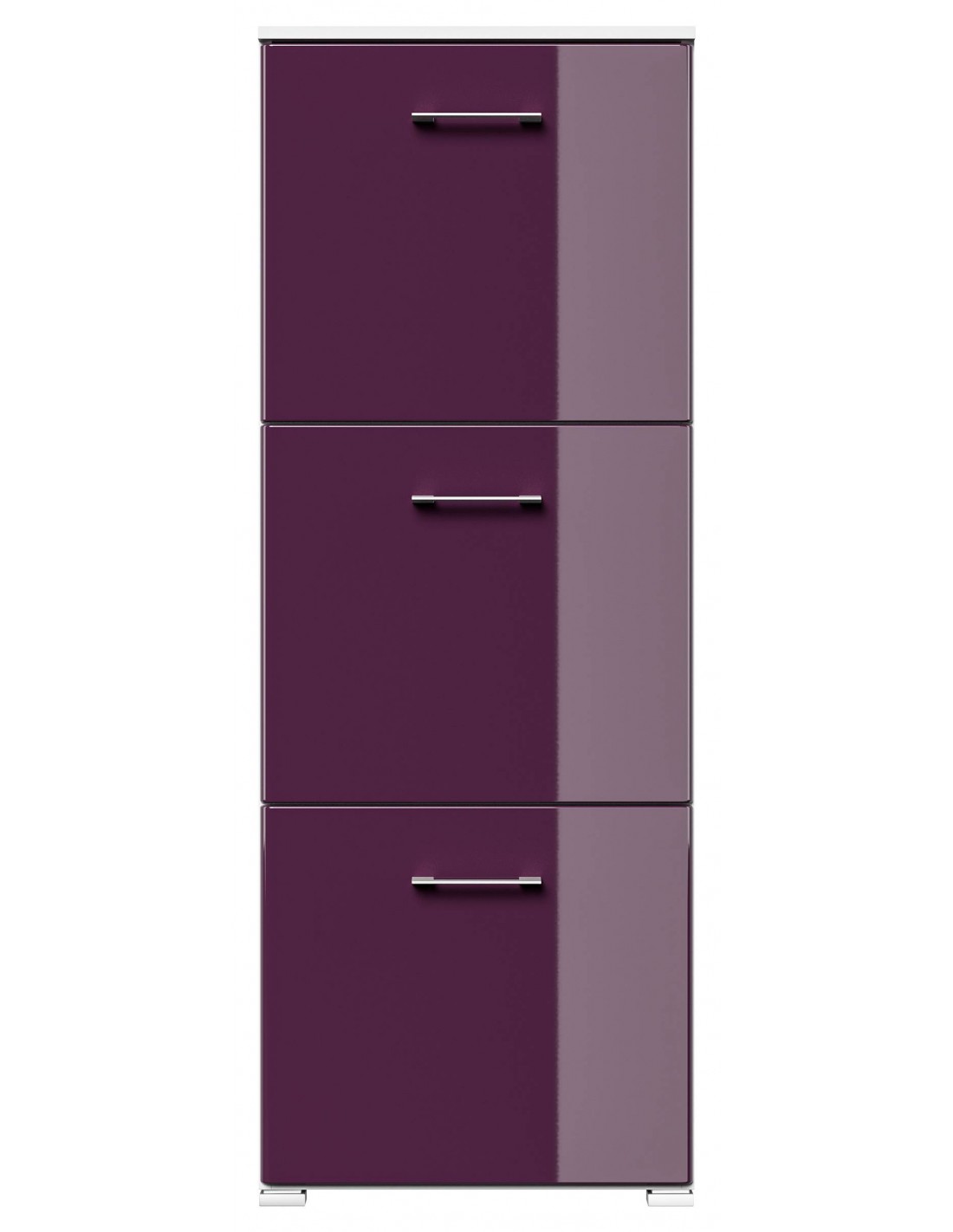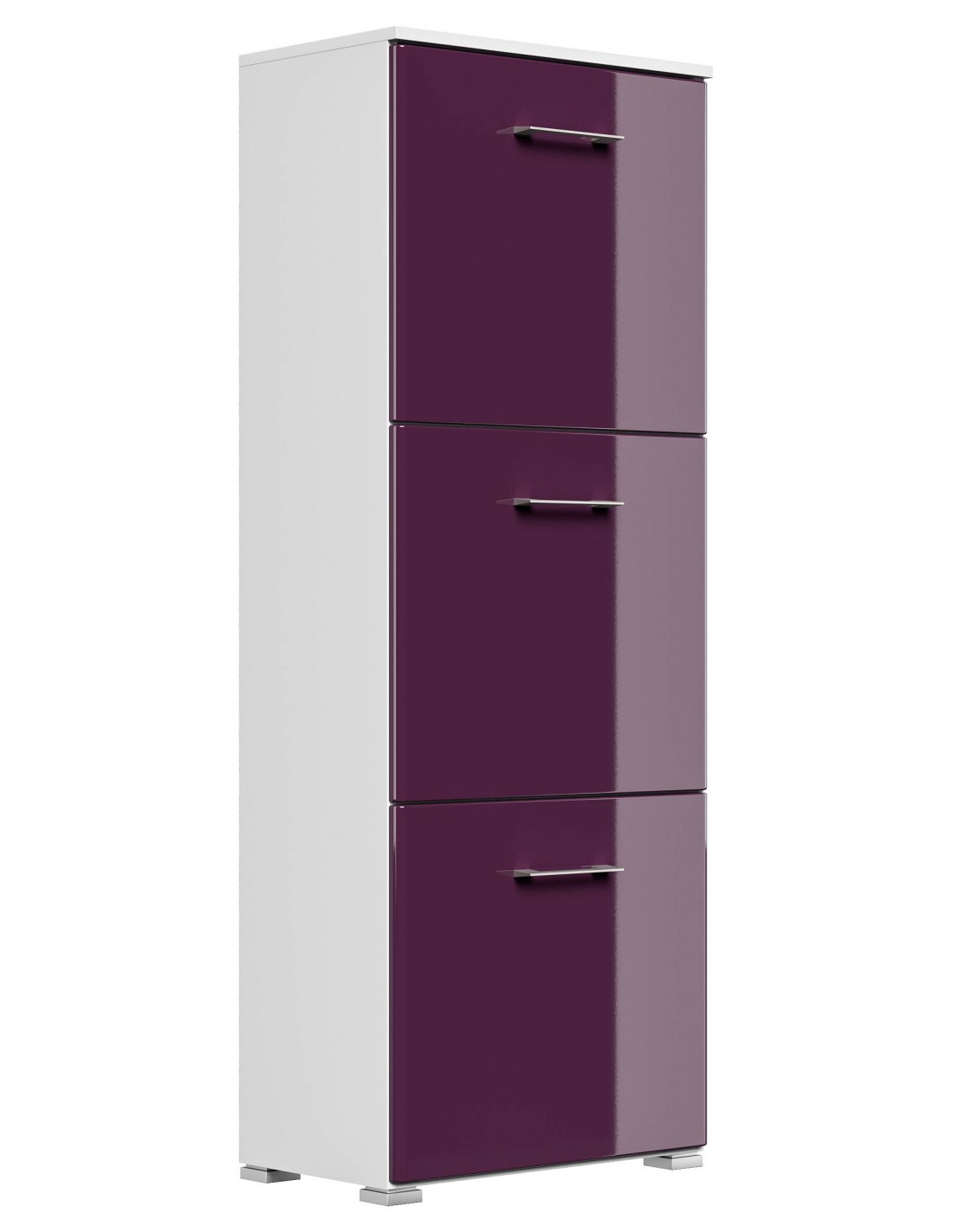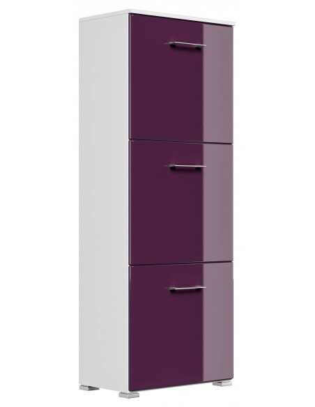 Skoskab udført i et design af mat hvid og brombærfarvet højglans mdf og møbelplade. Skoskabet måler 141,5 cm i højden og 52,4 x 31,6 cm i bredde og dybde.