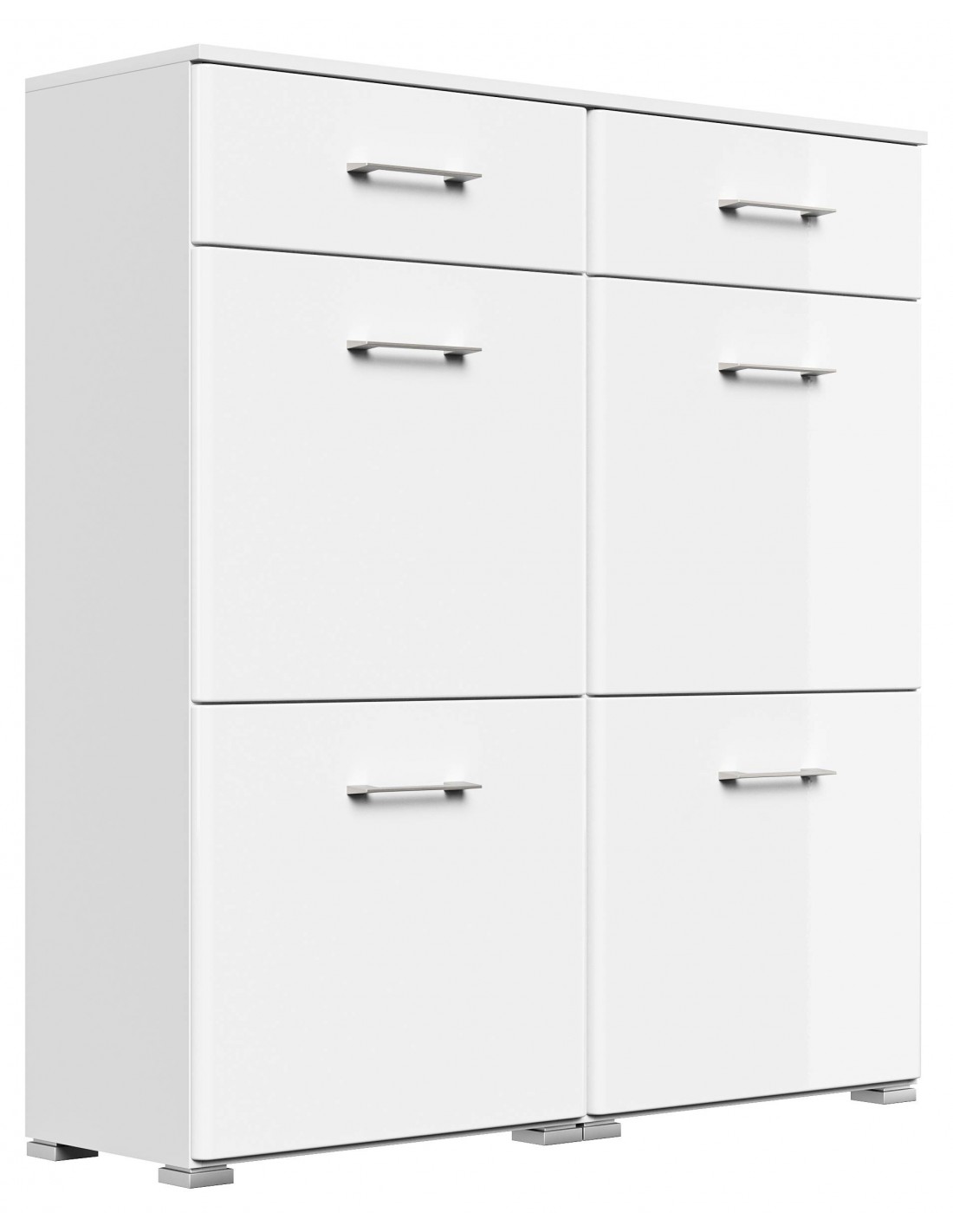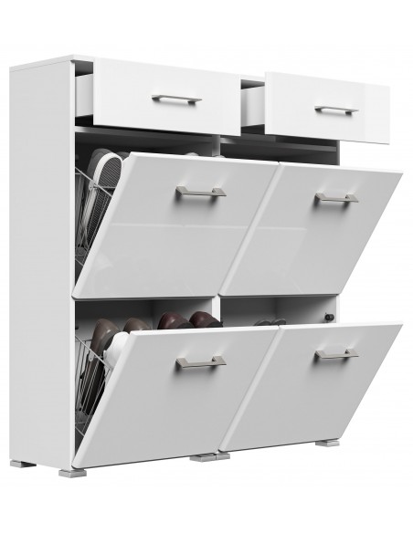 Skoskab i mdf og møbelplade H113,9 x B104,8 cm - Mat hvid/Hvid højglans