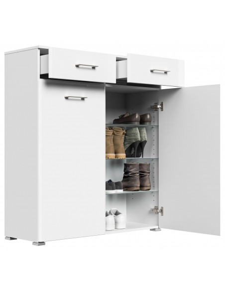 Skoskab i mdf og møbelplade H116,8 x B104,8 cm - Mat hvid/Hvid højglans