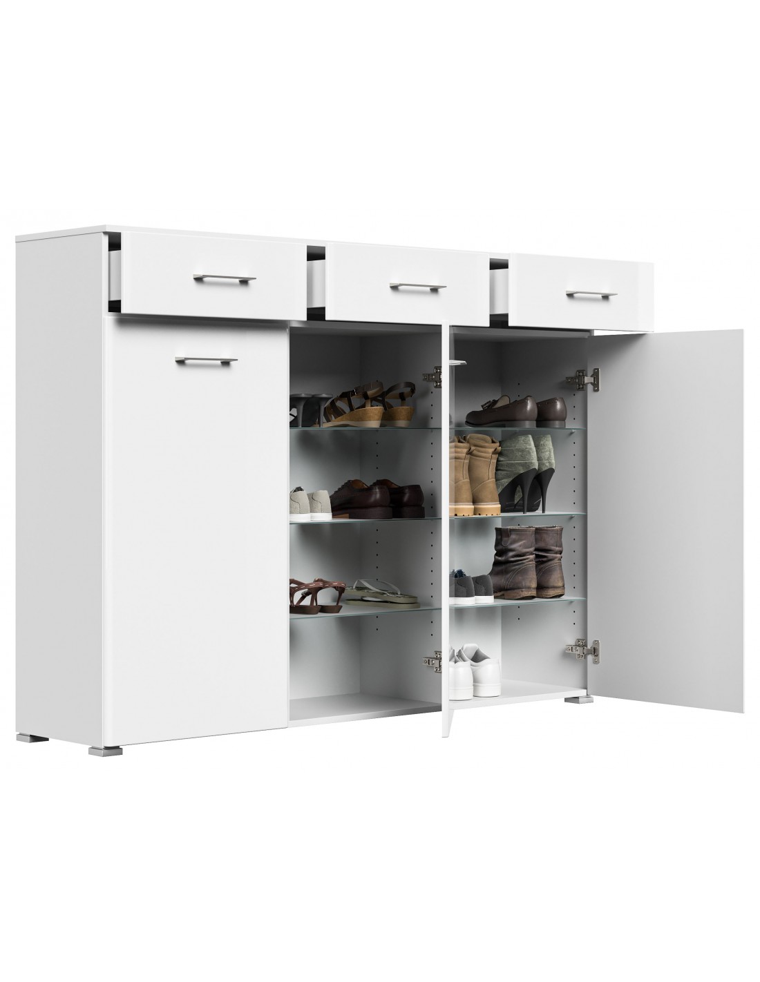 Skoskab i mdf og møbelplade H116,8 x B157,2 cm - Mat hvid/Hvid højglans