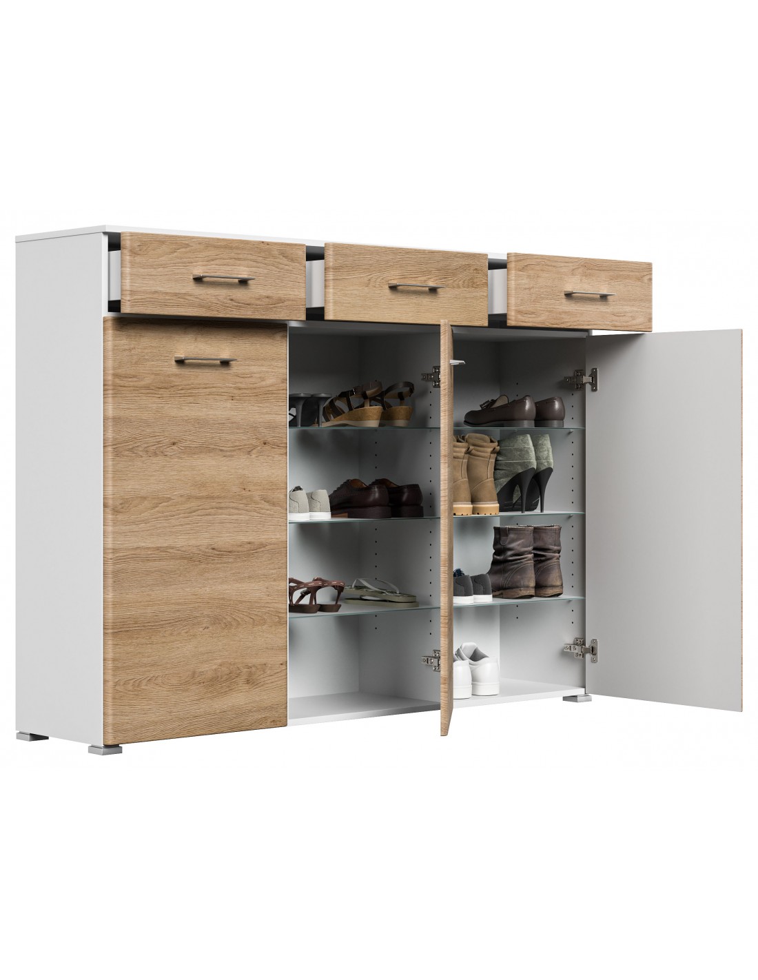 Skoskab i mdf og møbelplade H116,8 x B157,2 cm - Mat hvid/Eg