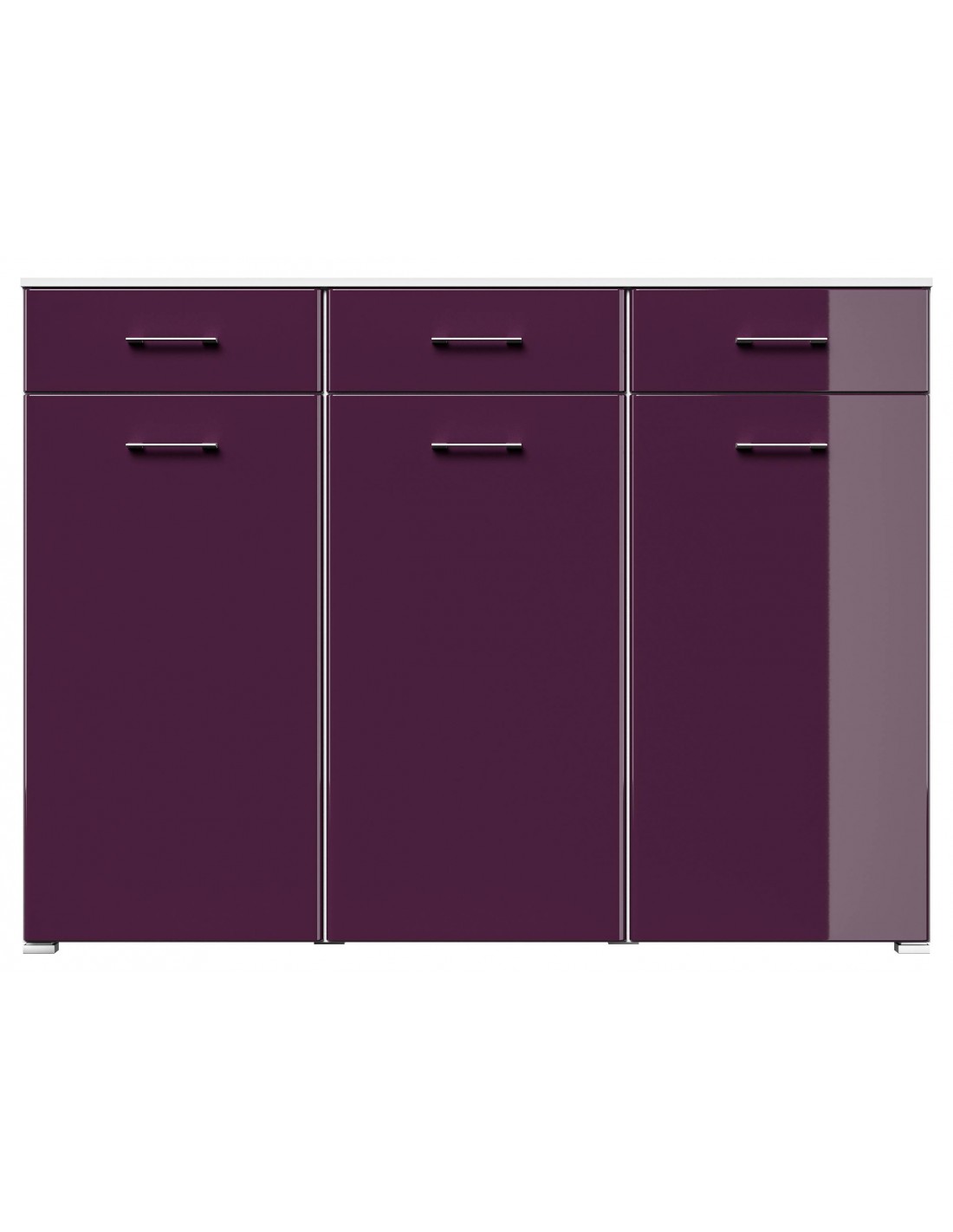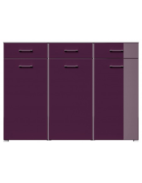 Skoskab udført i et design af mat hvid og brombærfarvet højglans mdf og møbelplade. Skoskabet måler 116,8 cm i højden og 157,2 x 36,9 cm i bredde og dybde.