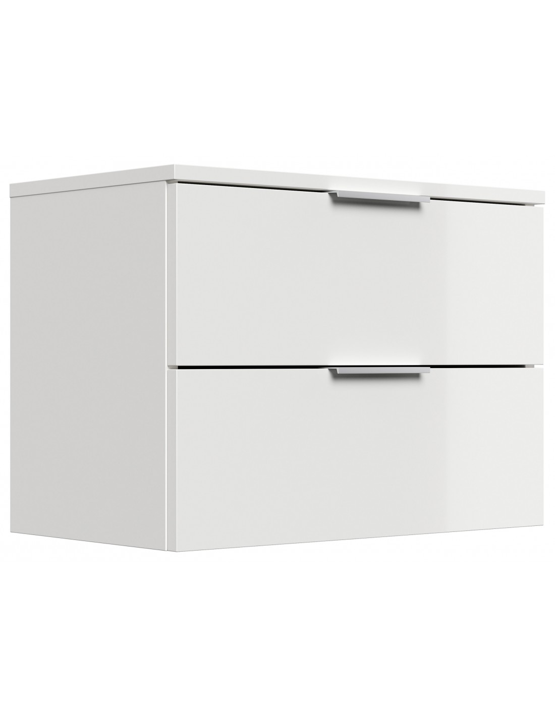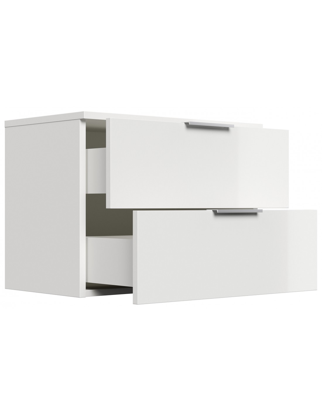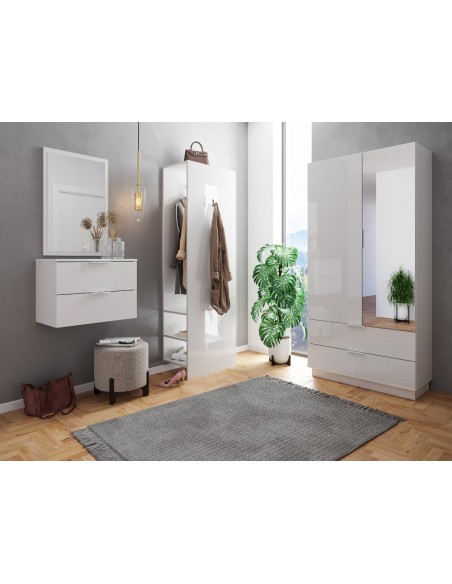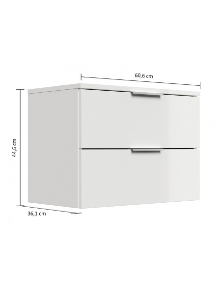 Væghængt garderobe udført i et design af hvid højglans mdf. Garderoben måler 44,6 cm i højden og 60,6 x 36,1 cm i bredde og dybde.