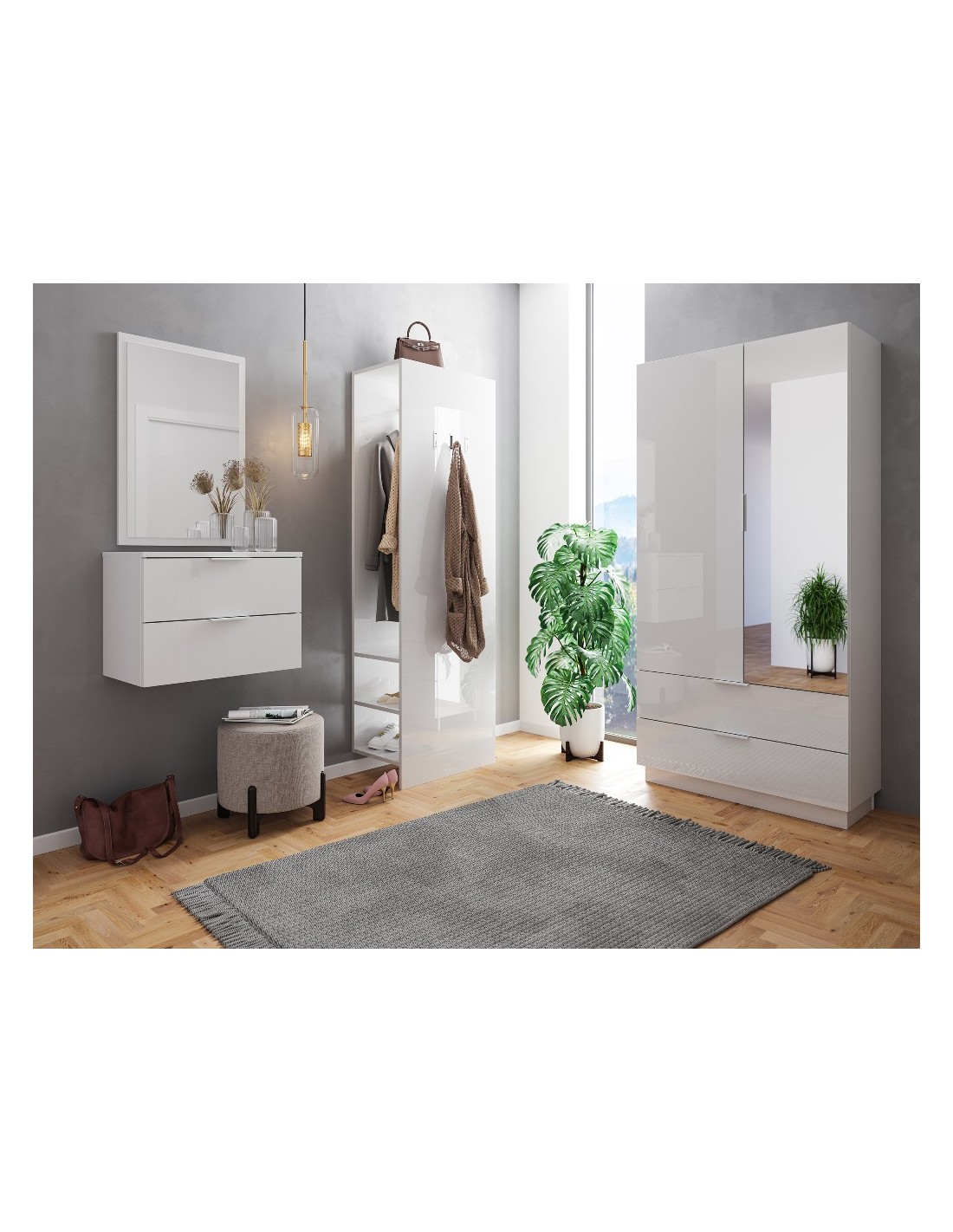 Væghængt garderobe i mdf H44,6 x B60,6 cm - Hvid højglans