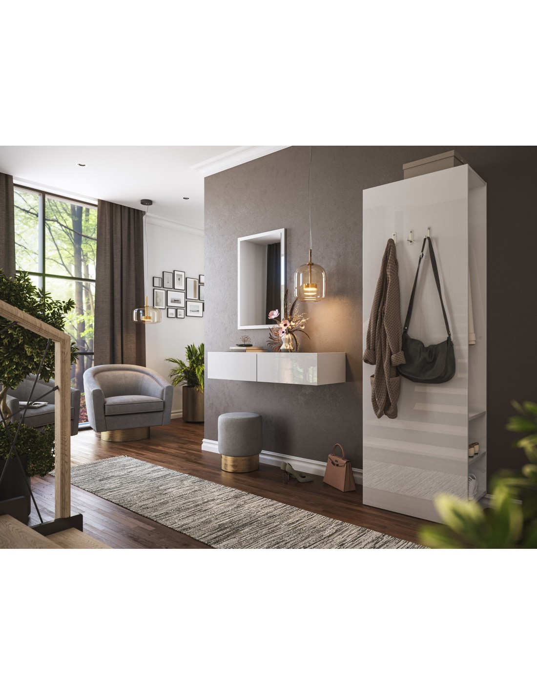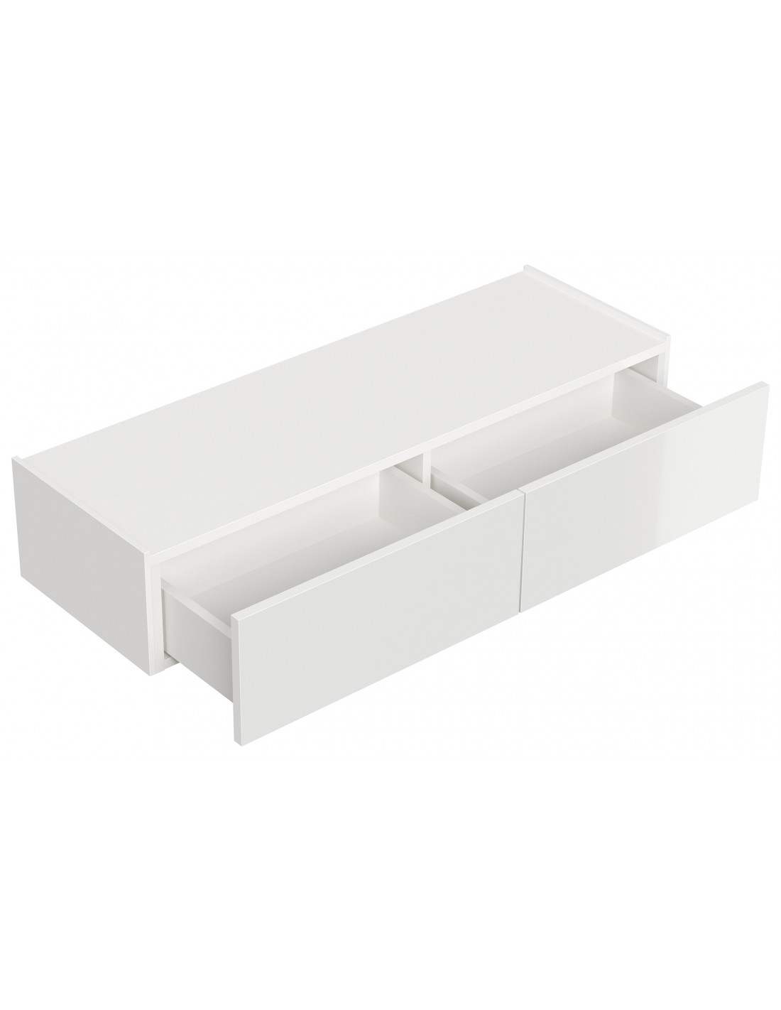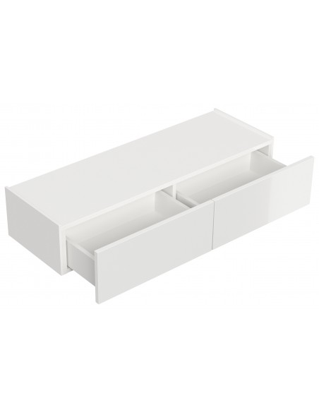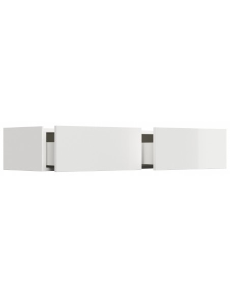 Væghængt garderobe udført i et design af hvid højglans mdf. Garderoben måler 21 cm i højden og 104,7 x 36 cm i bredde og dybde. Skufferne er med push-to-open funktion.