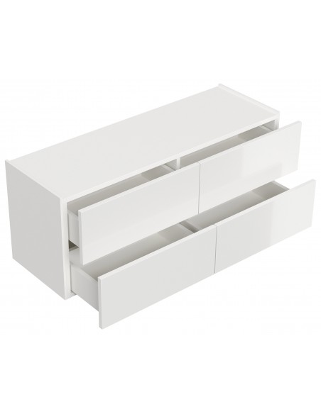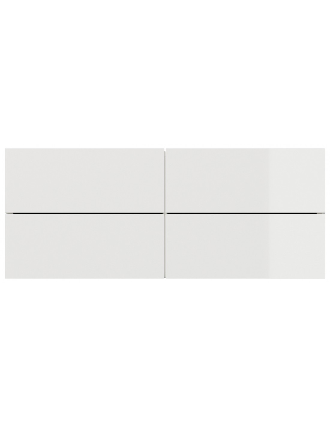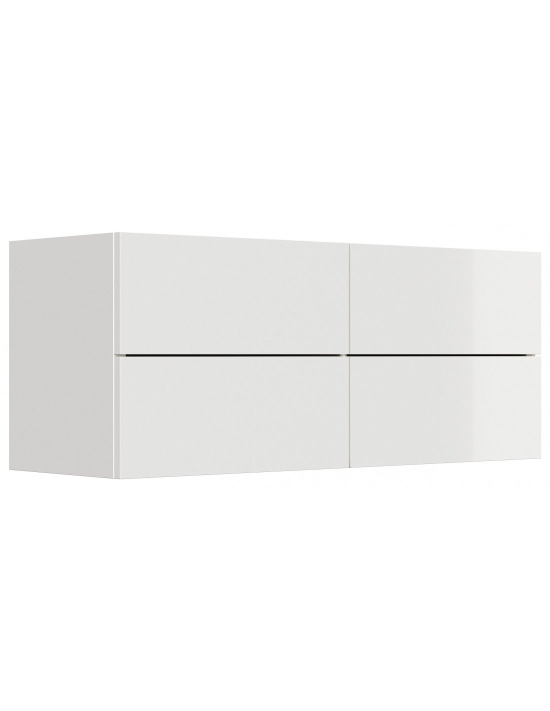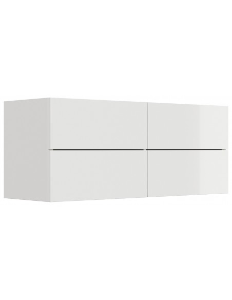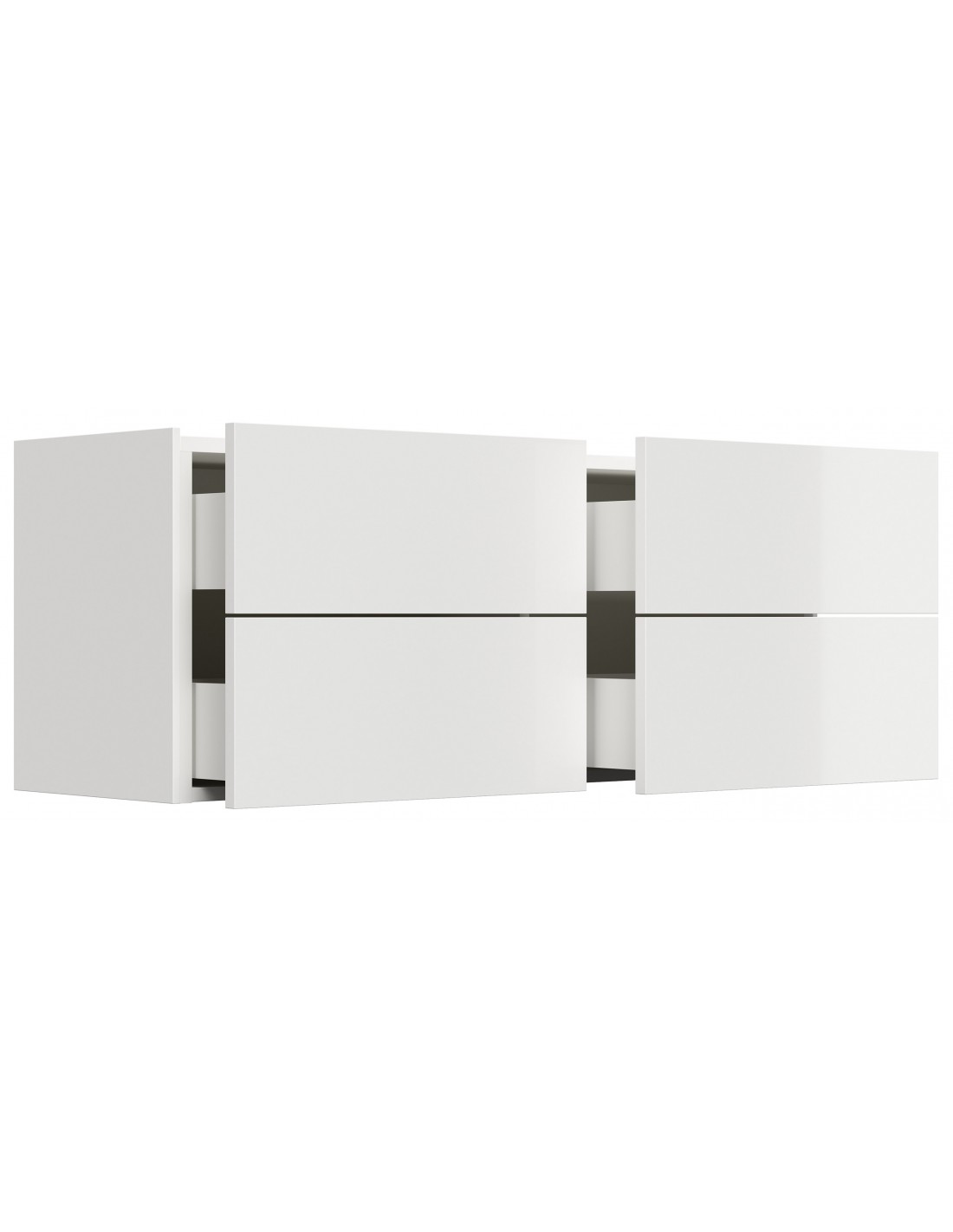 Væghængt garderobe udført i et design af hvid højglans mdf. Garderoben måler 42,4 cm i højden og 104,7 x 36 cm i bredde og dybde. Skufferne er med push-to-open funktion.
