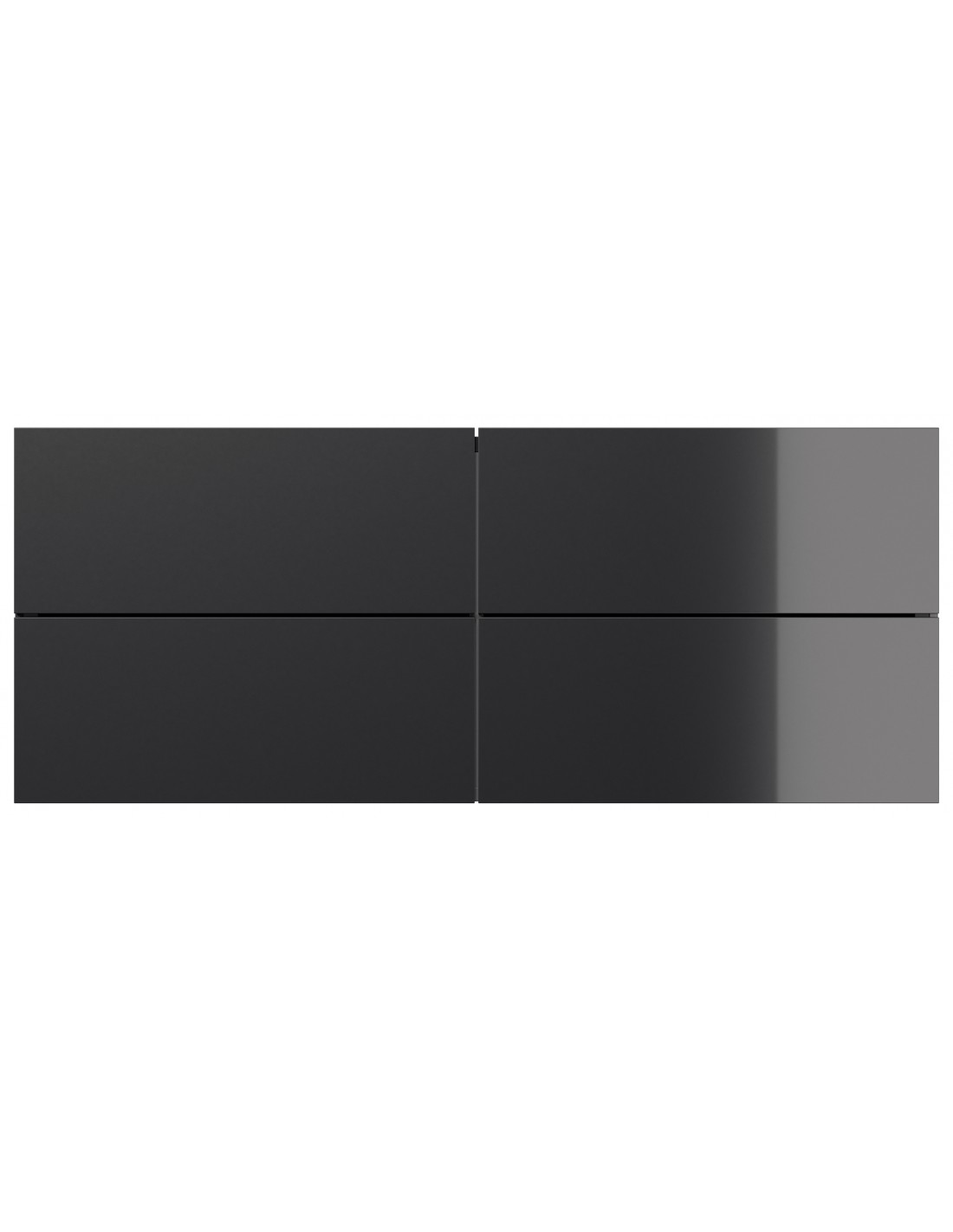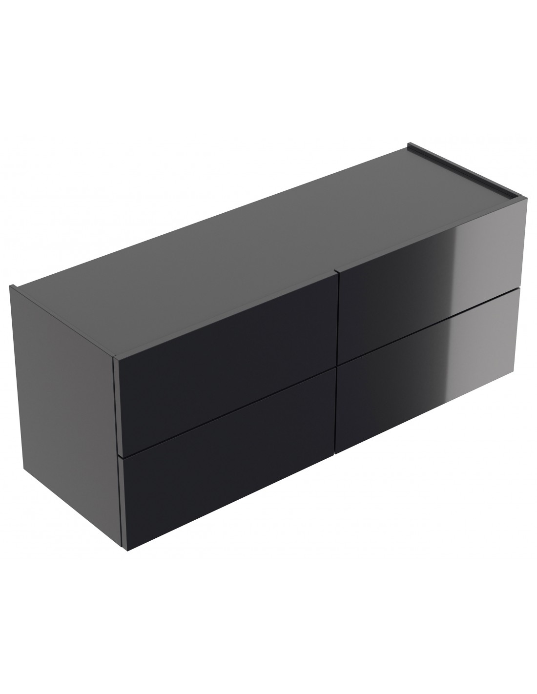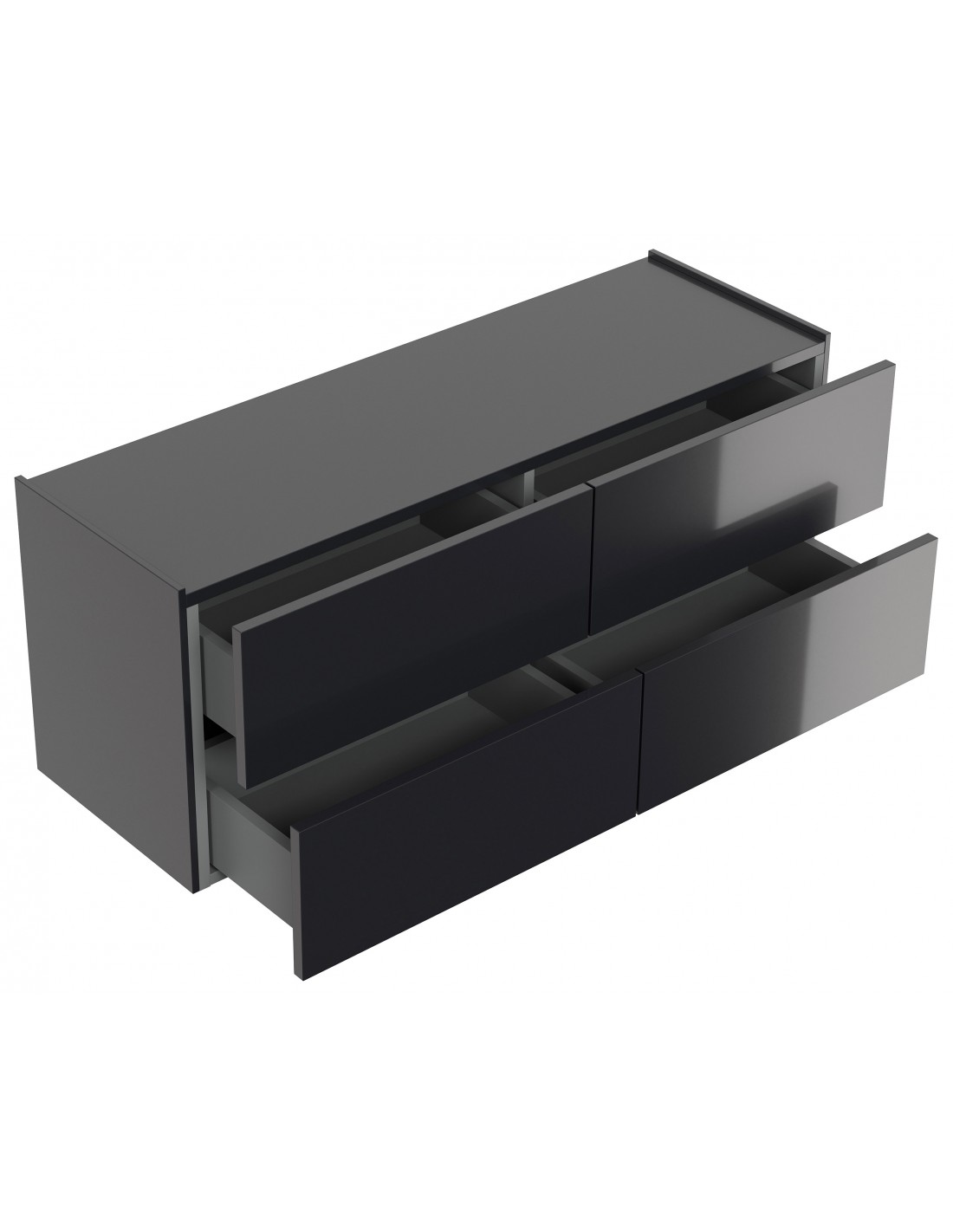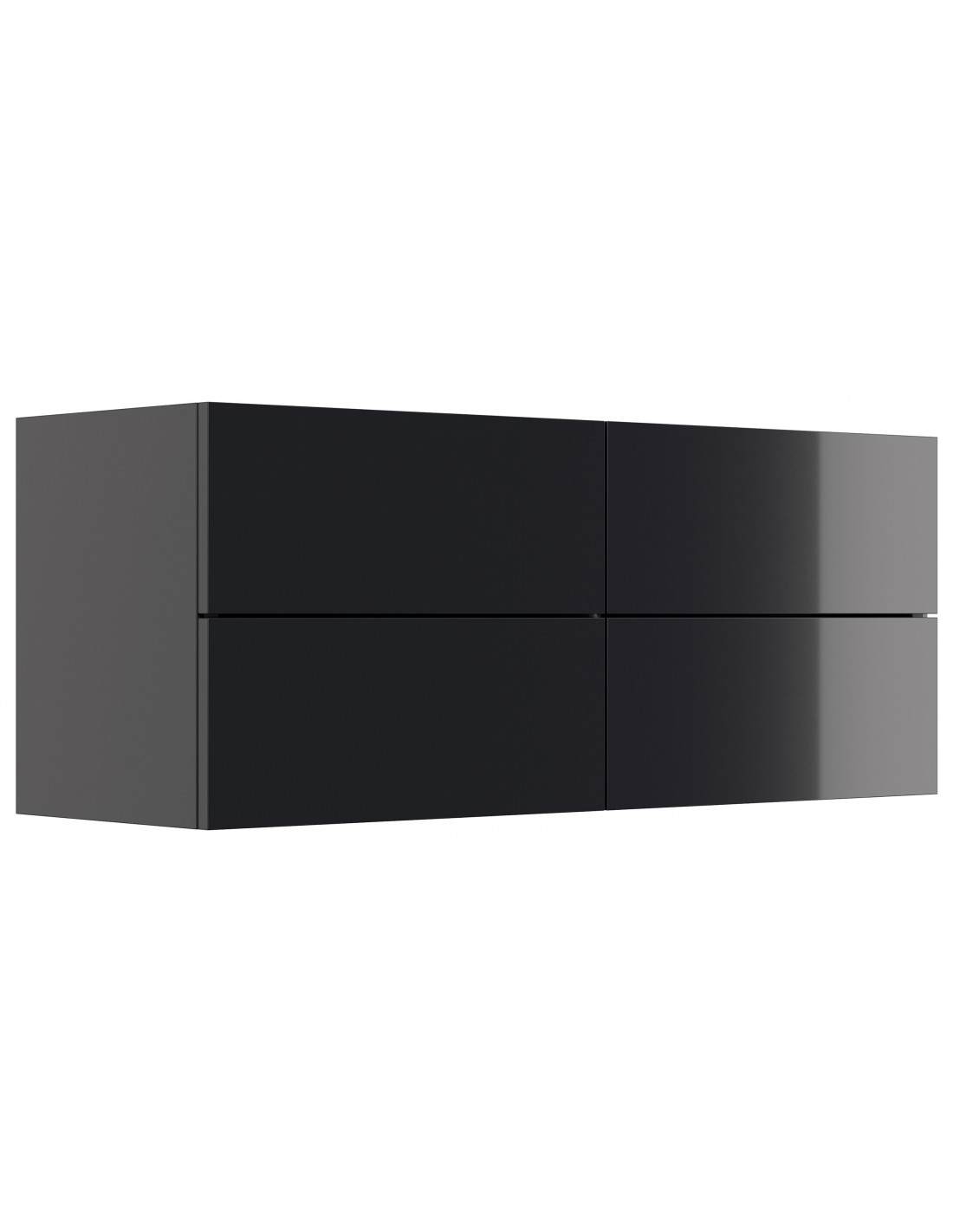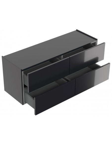 Væghængt garderobe udført i et design af grafitgrå højglans mdf. Garderoben måler 42,4 cm i højden og 104,7 x 36 cm i bredde og dybde. Skufferne er med push-to-open funktion.