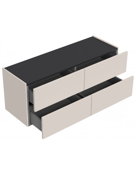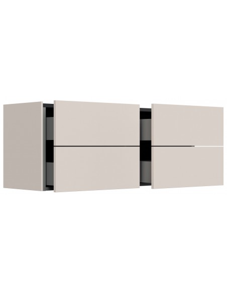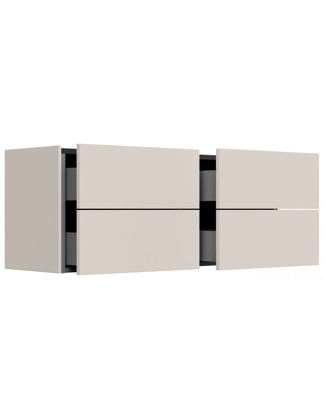 Væghængt garderobe udført i et design af grafitgrå og cremefarvet mdf. Garderoben måler 42,4 cm i højden og 104,7 x 36 cm i bredde og dybde. Skufferne er med push-to-open funktion.