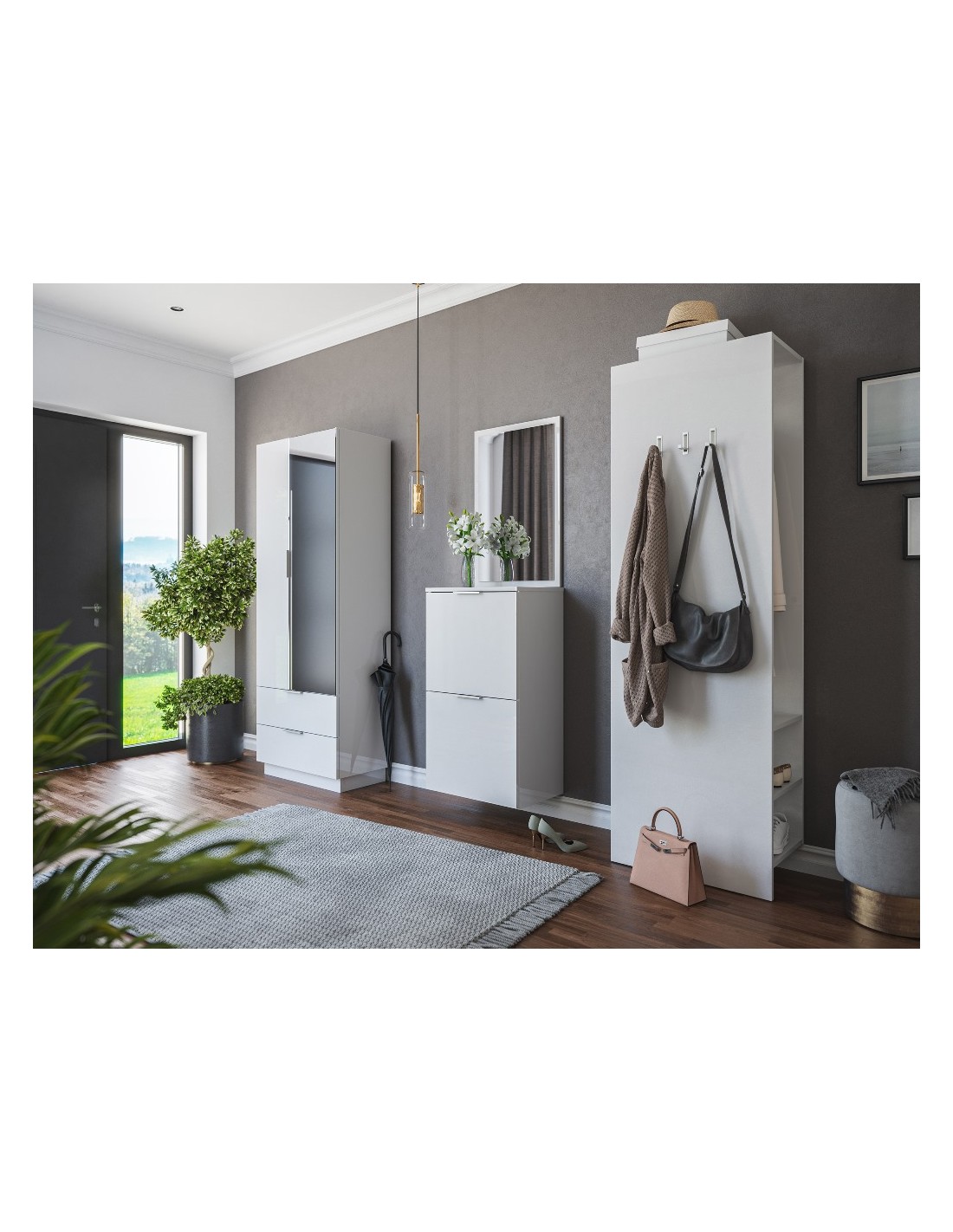 Væghængt skoskab i mdf og møbelplade H93,2 x B52,9 cm - Mat hvid/Hvid højglans