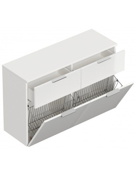 Væghængt skoskab i mdf og møbelplade H68,9 x B104,9 cm - Mat hvid/Hvid højglans