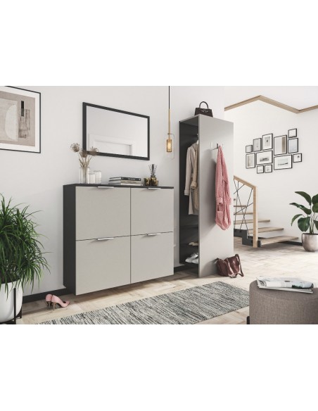 Væghængt skoskab i mdf og møbelplade H93,2 x B104,9 cm - Grafitgrå/Creme