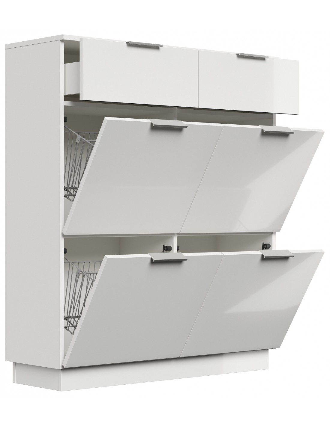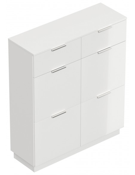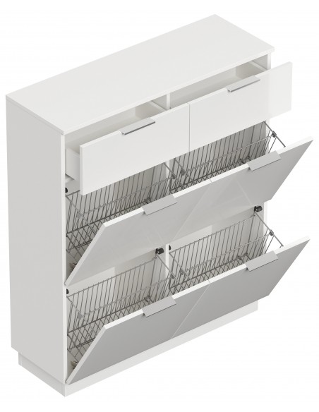Skoskab i mdf og møbelplade H123,3 x B104,9 cm - Mat hvid/Hvid højglans