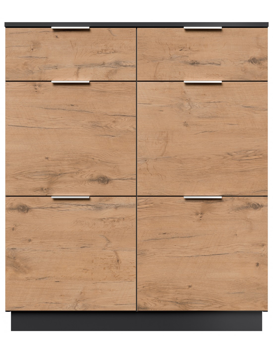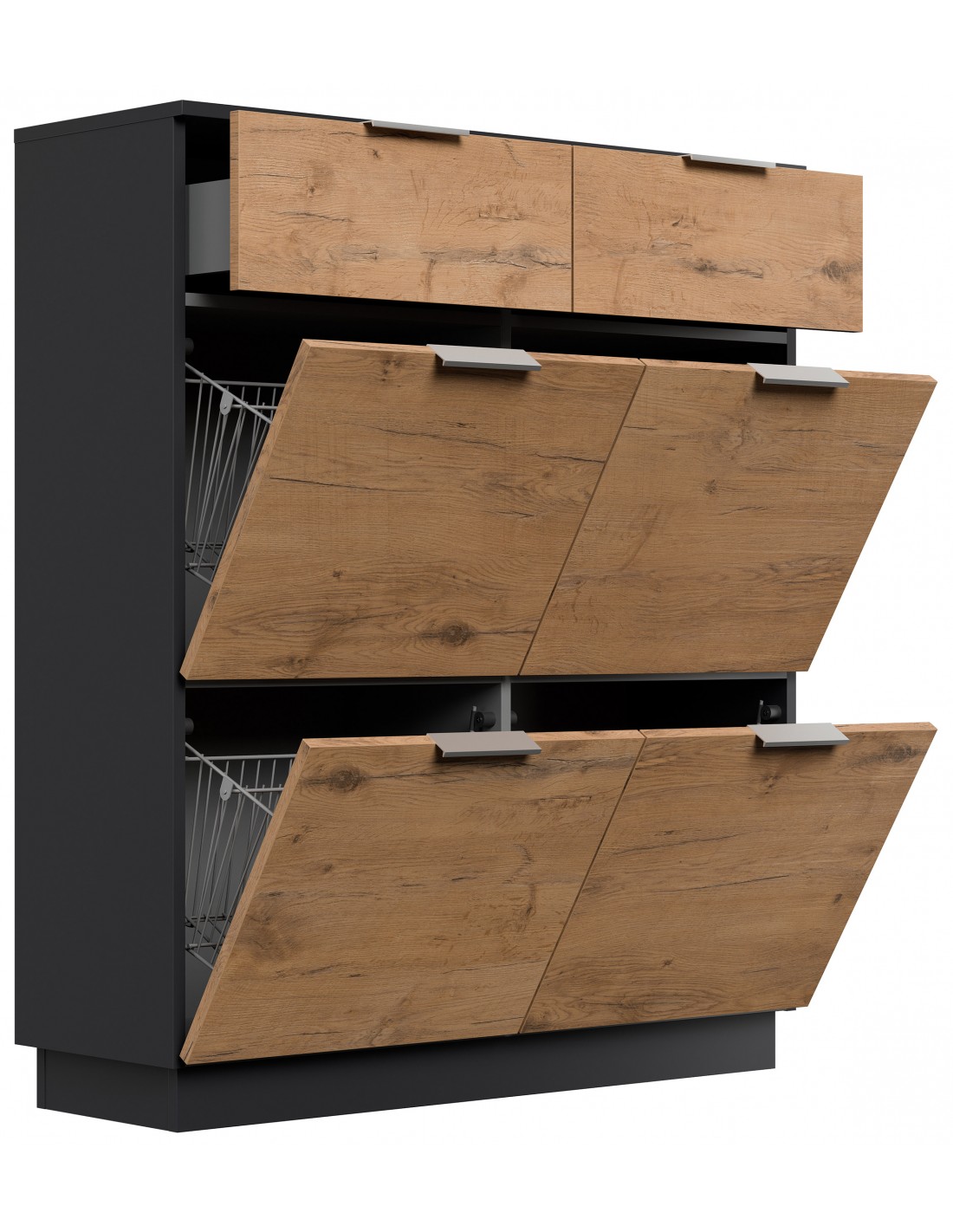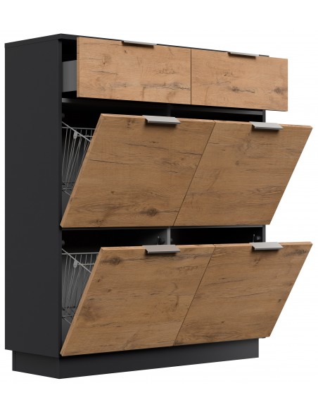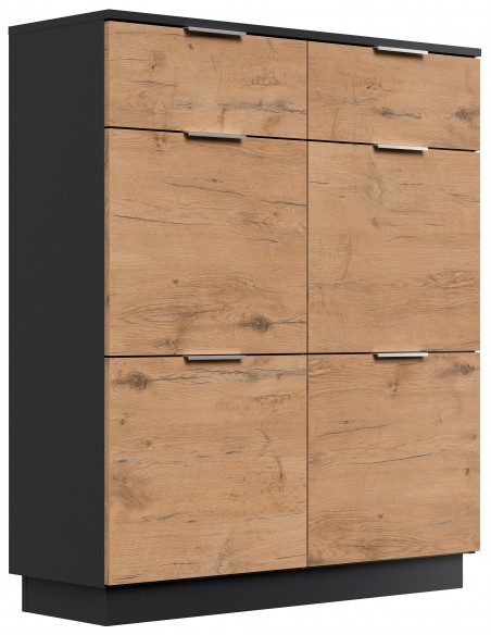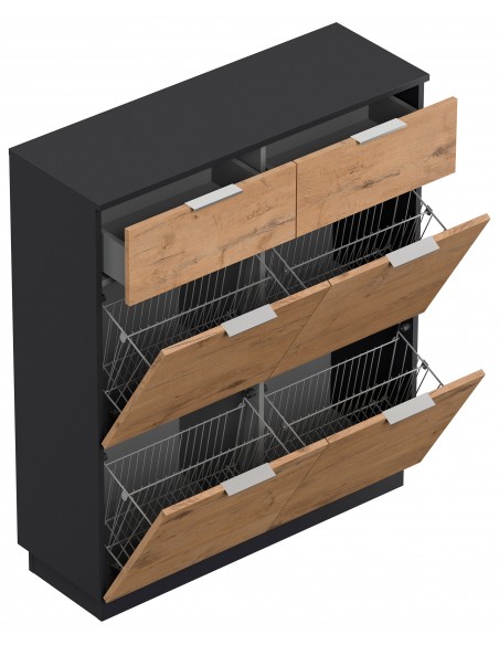 Skoskab i mdf og møbelplade H123,3 x B104,9 cm - Grafitgrå/Eg