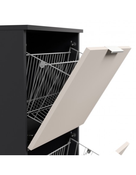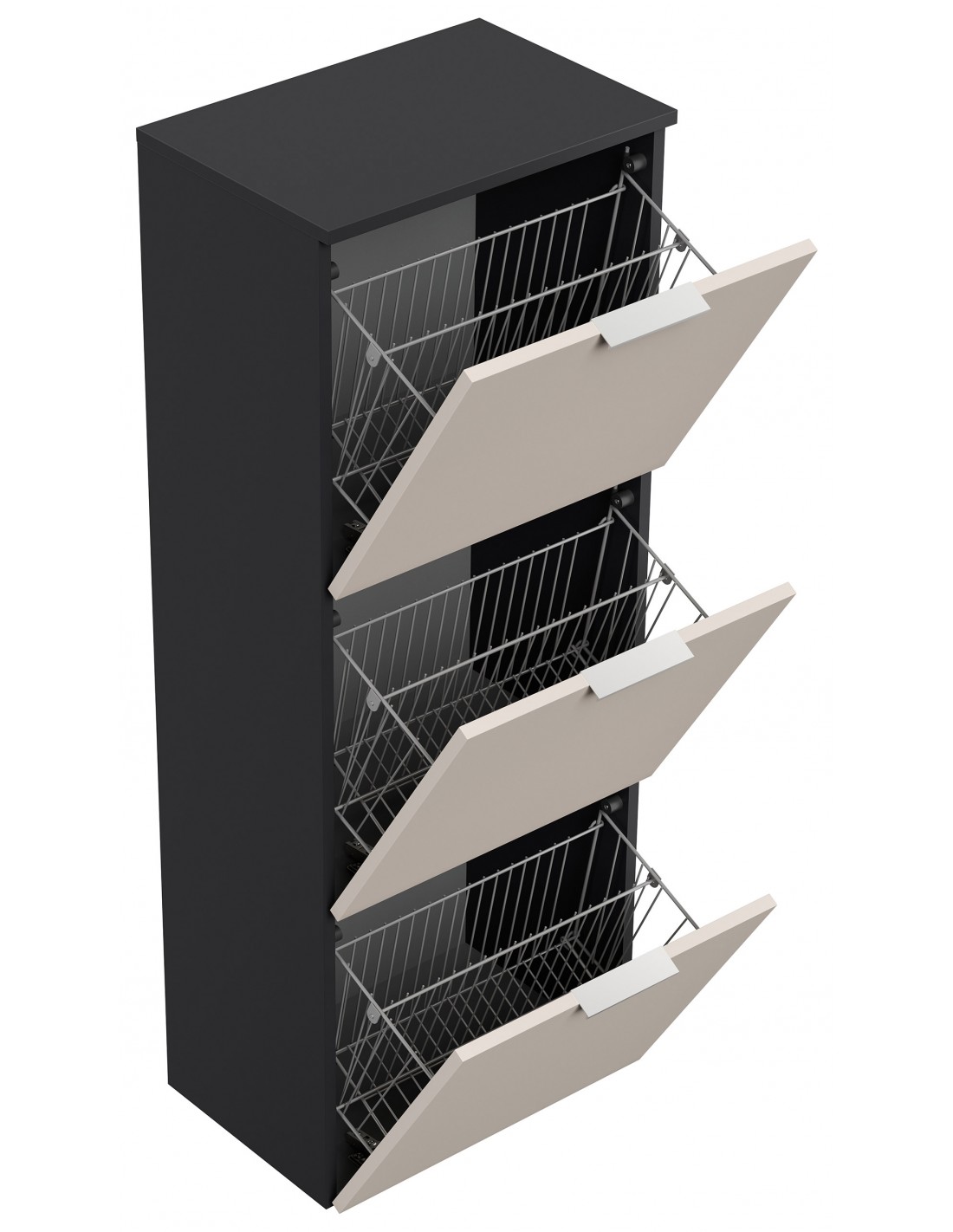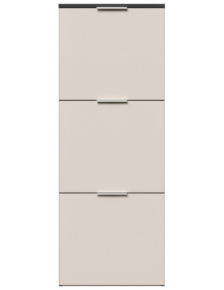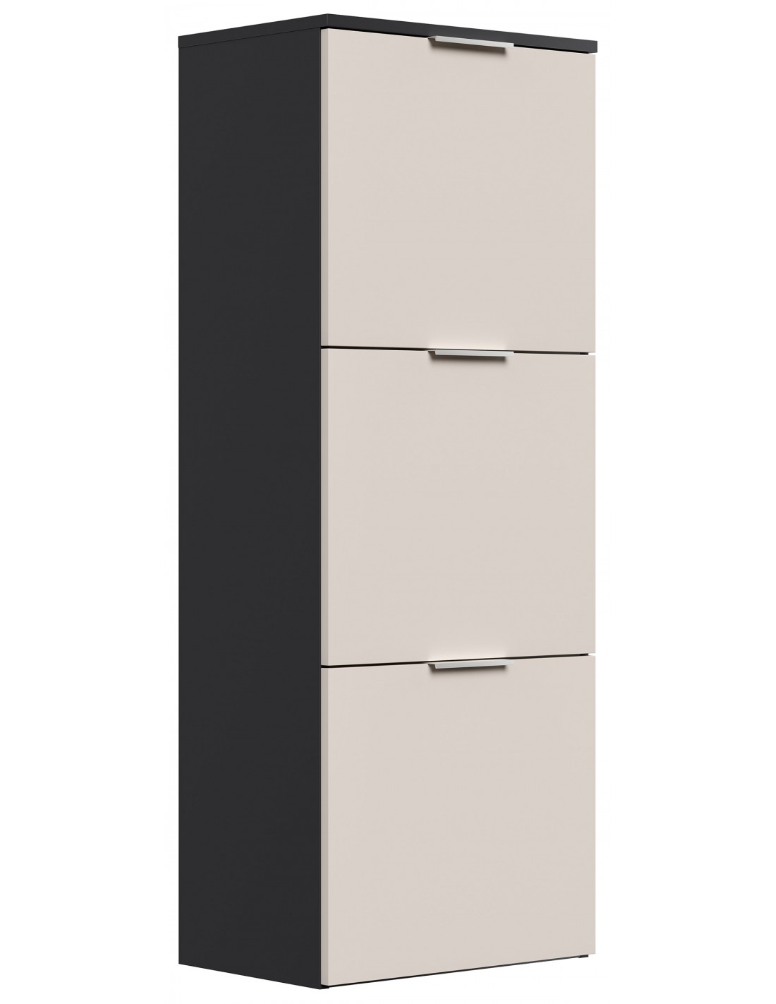 Væghængt skoskab udført i et design af grafitgrå og cremefarvet mdf og møbelplade. Skoskabet måler 138,9 cm i højden og 52,9 x 36,1 cm i bredde og dybde.