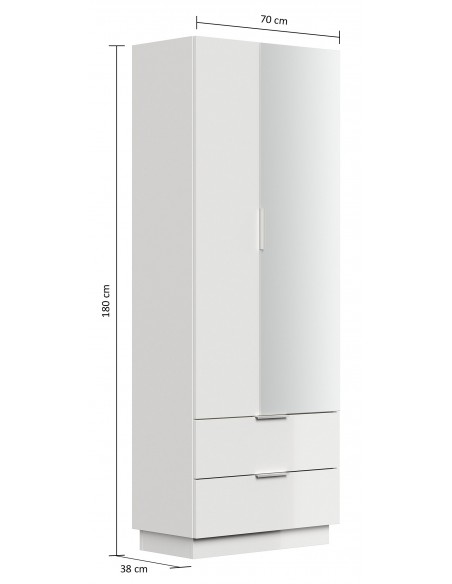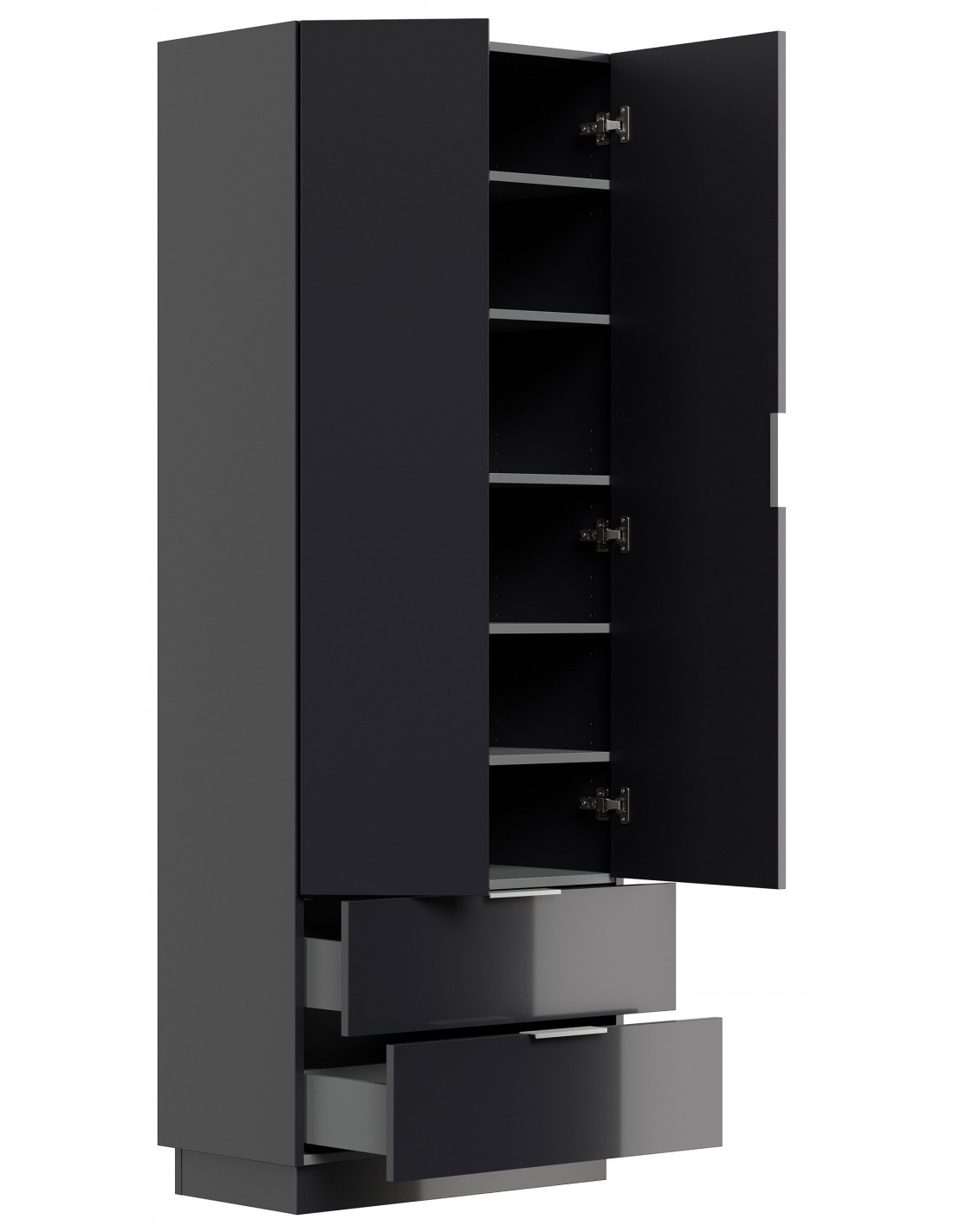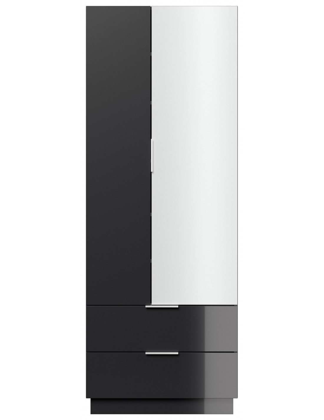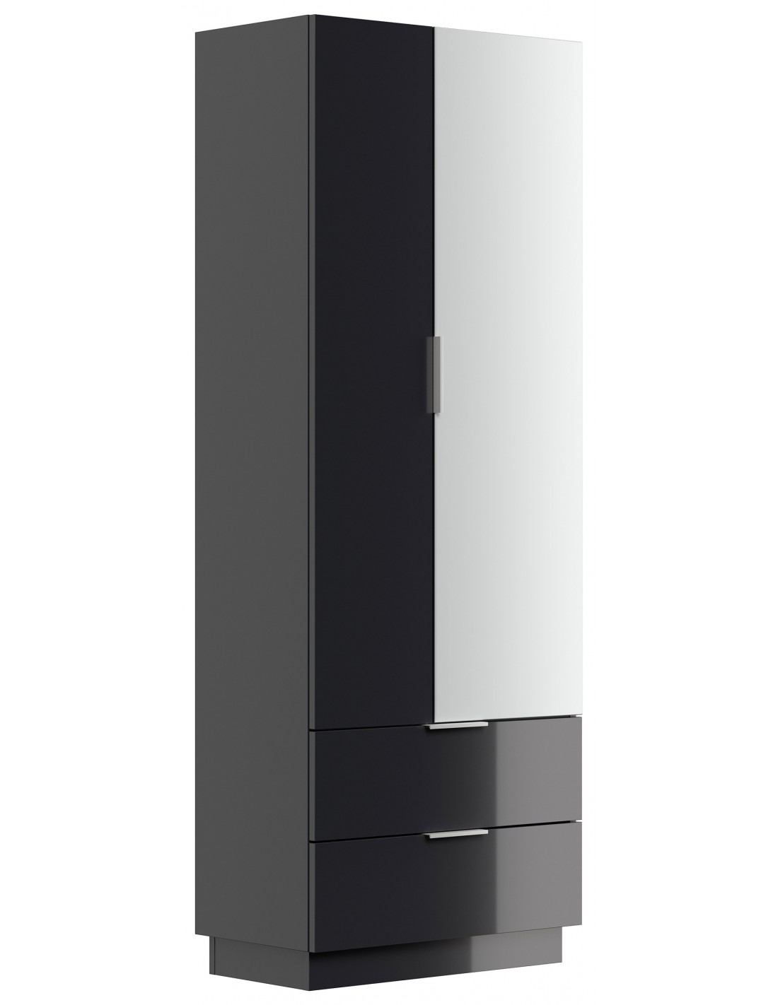 Garderobe og skoskab udført i et design af grafitgrå højglans mdf og møbelplade. Skabet måler 180 cm i højden og 70 x 38 cm i bredde og dybde.