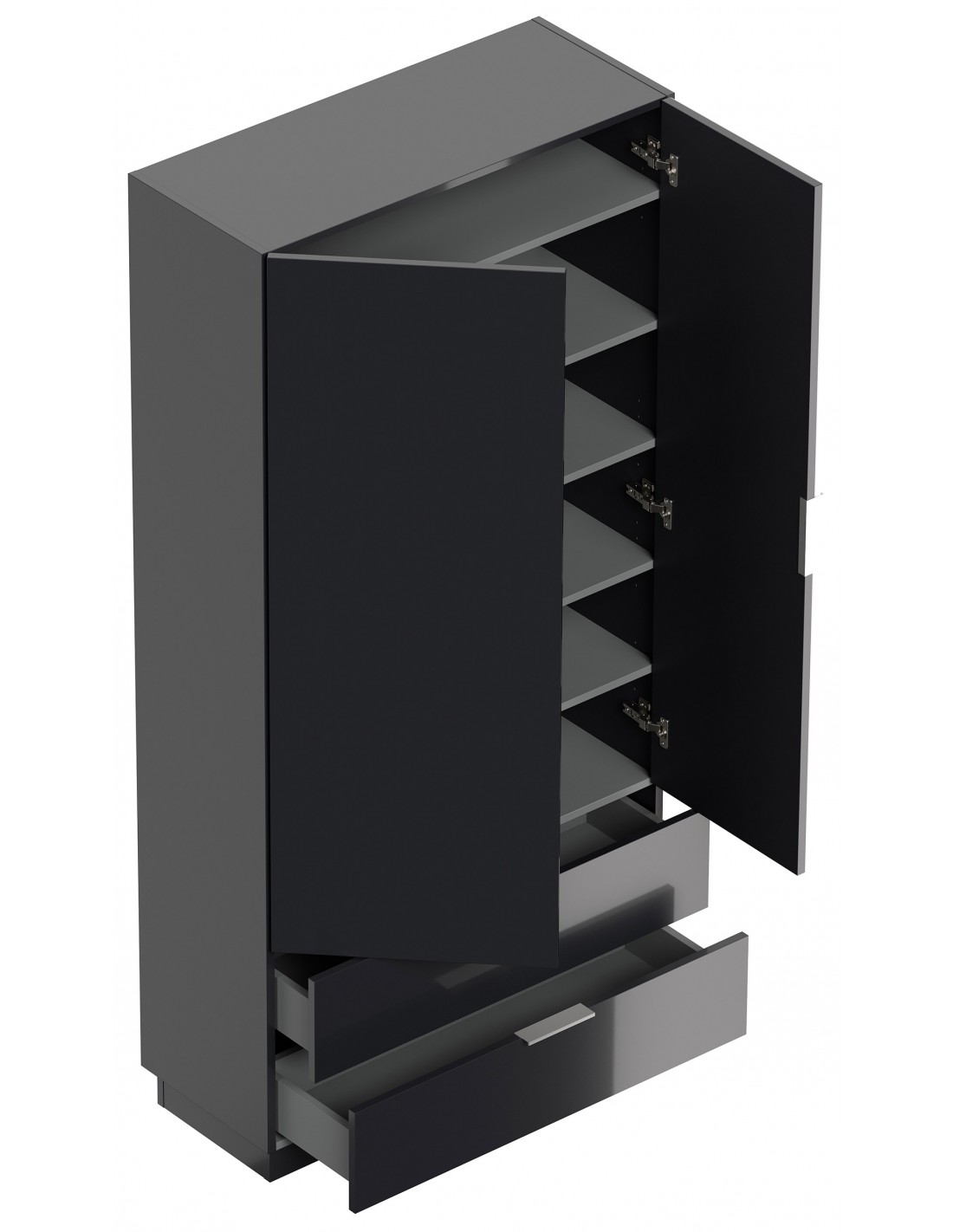 Garderobe og skoskab i mdf og møbelplade H180 x B90 cm - Grafitgrå højglans