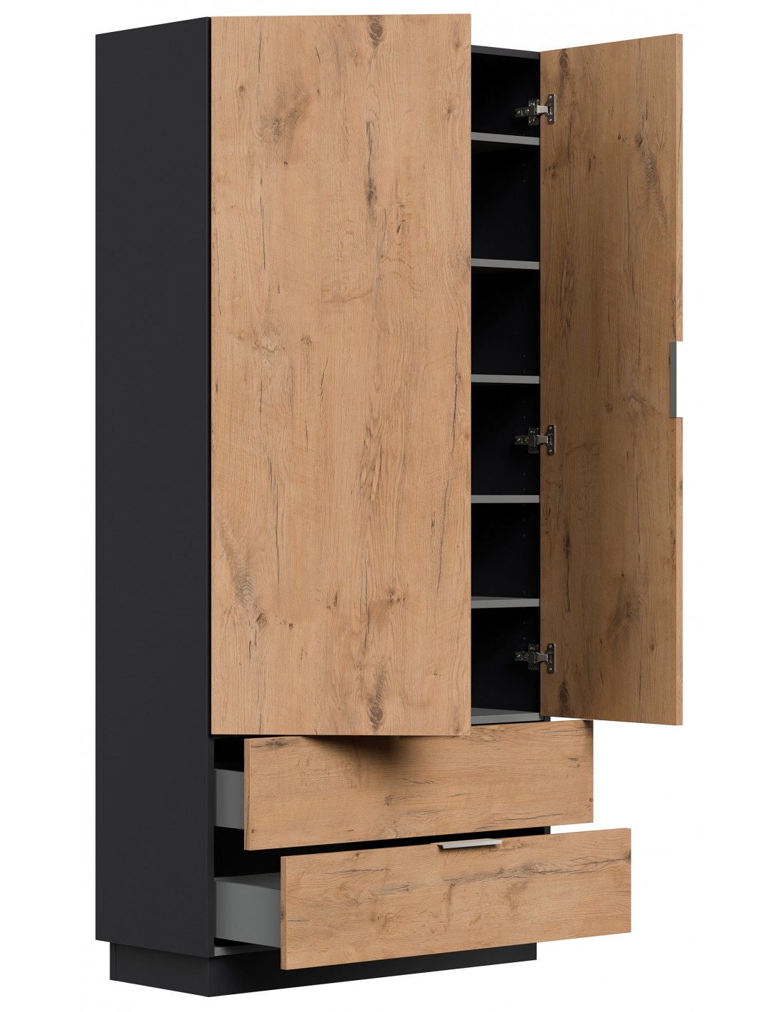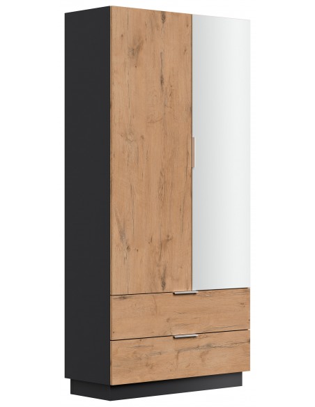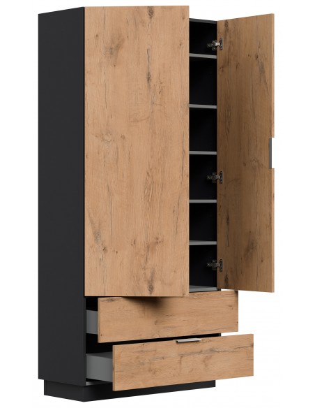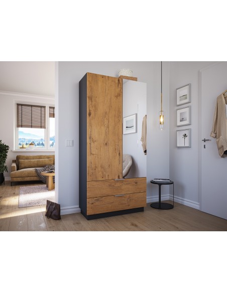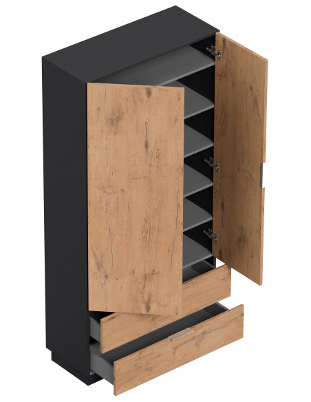 Garderobe og skoskab i mdf og møbelplade H180 x B90 cm - Grafitgrå/Eg