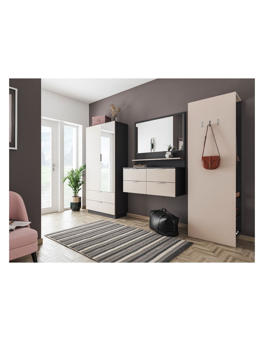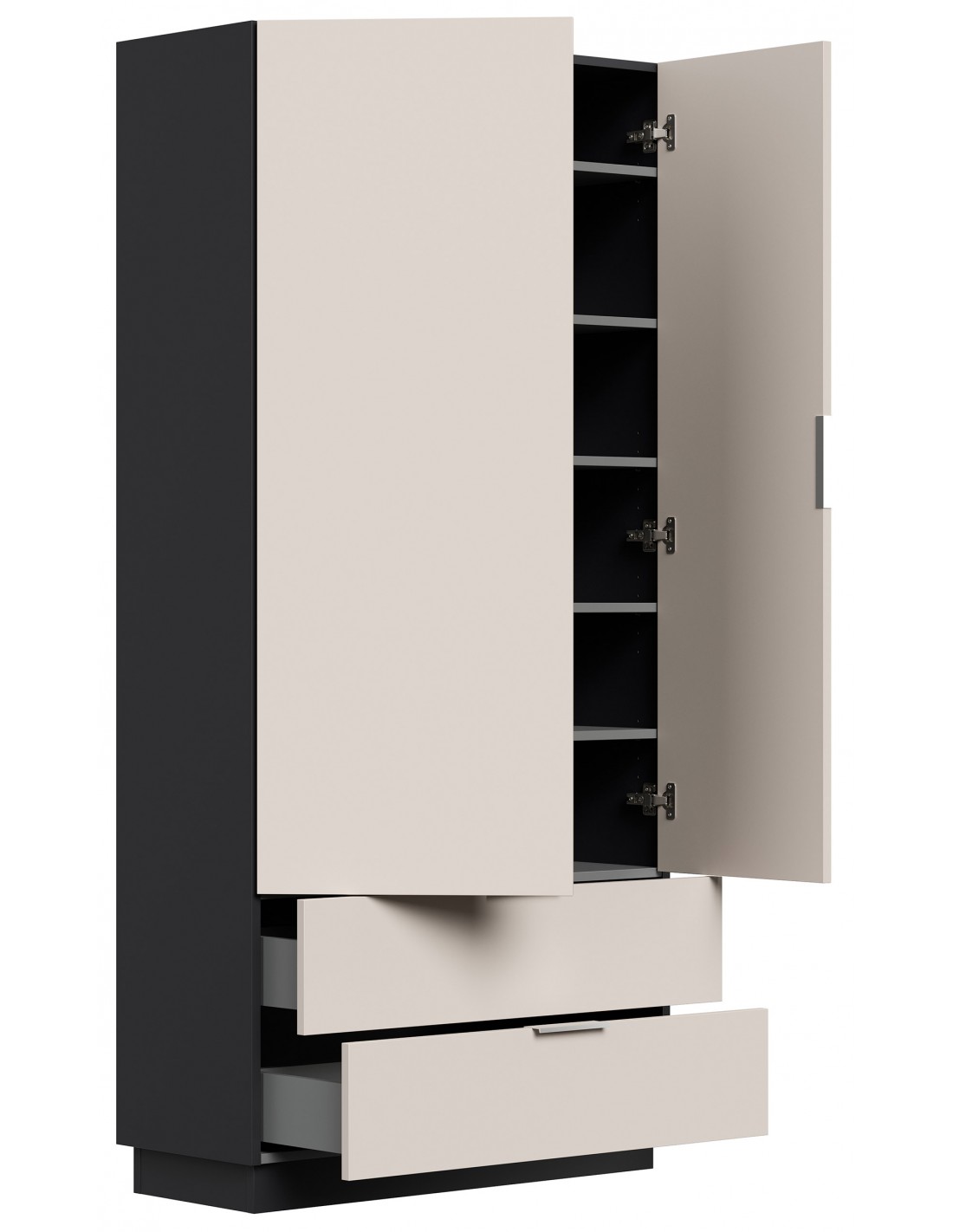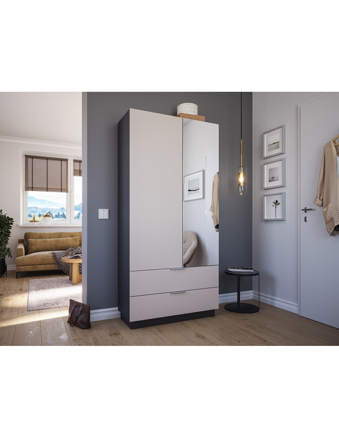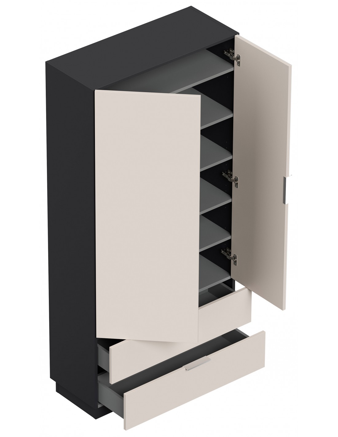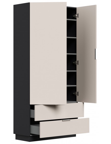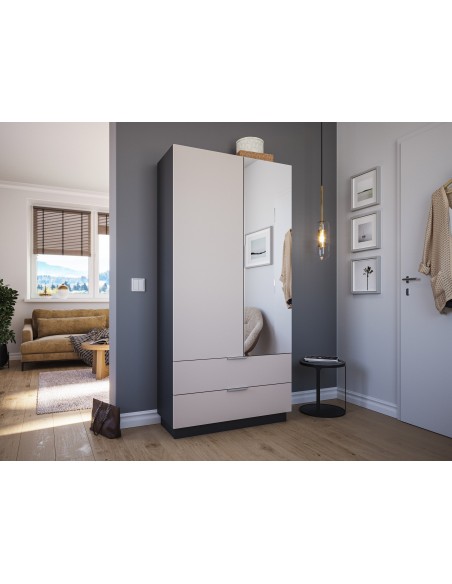 Garderobe og skoskab i mdf og møbelplade H180 x B90 cm - Grafitgrå/Creme